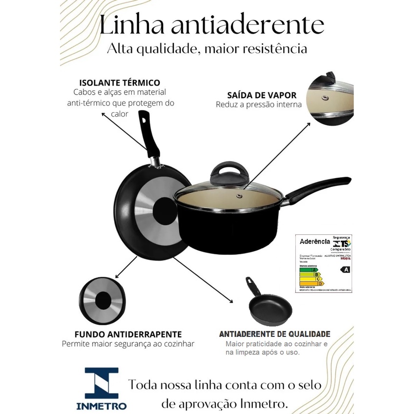 Conjunto De Panelas Teflon 09 Peças Tampa De Vidro