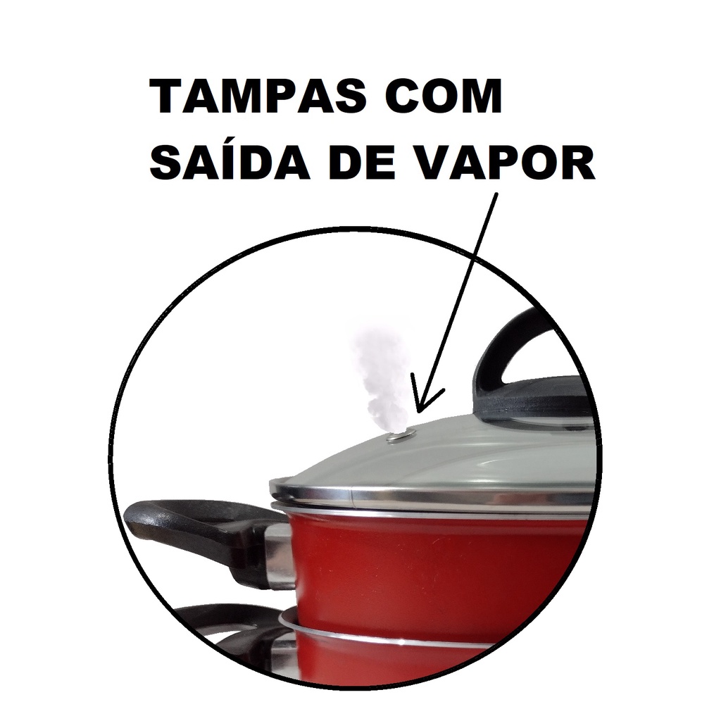 Conjunto De Panelas Vermelho 09 Peças Antiaderente - Red Edition