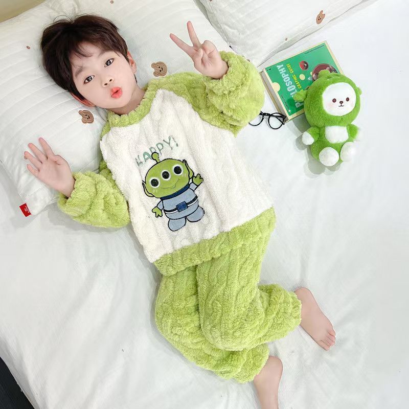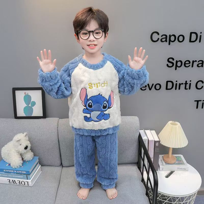 Conjunto De Pijama De Flanela Infantil 2025 Inverno Criança Desenho Animado Ponto Padrão Cor Bloqueada Calças De Manga C