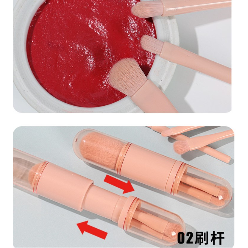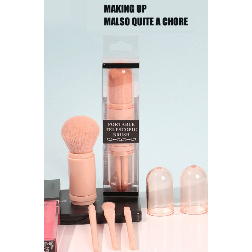 Conjunto De Pincéis De Maquiagem Retrátil 4 Em 1 Portátil / Mini Pincel De Blush E Sombra