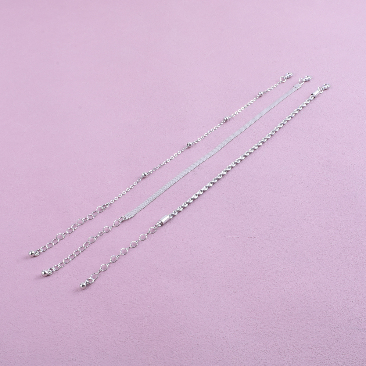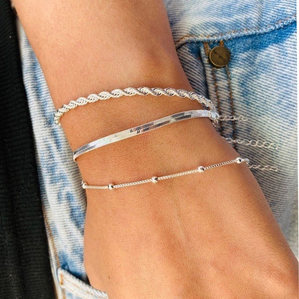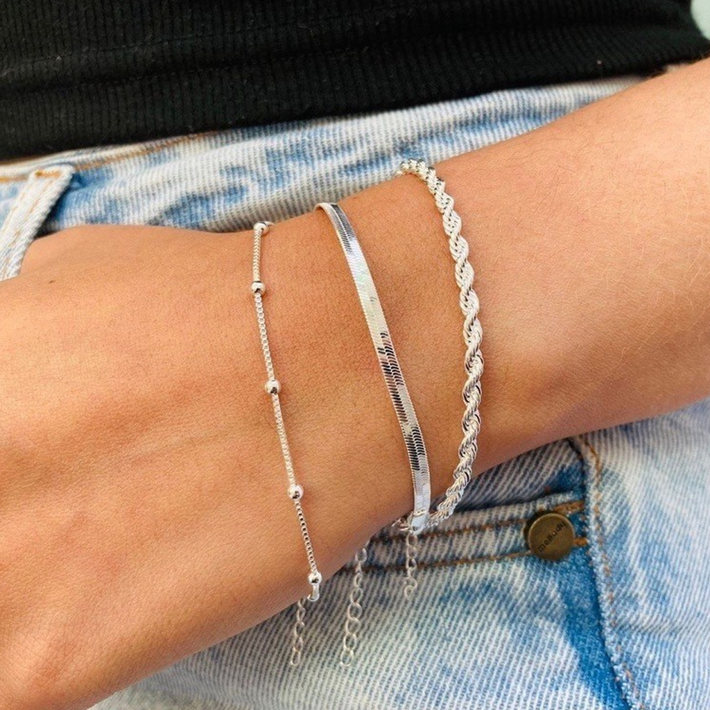Conjunto De Pulseira Baiano Banhada A Prata 3 Peças Com Padrão De Pontos E Corrente De Cobra Em Camadas Torcidas
