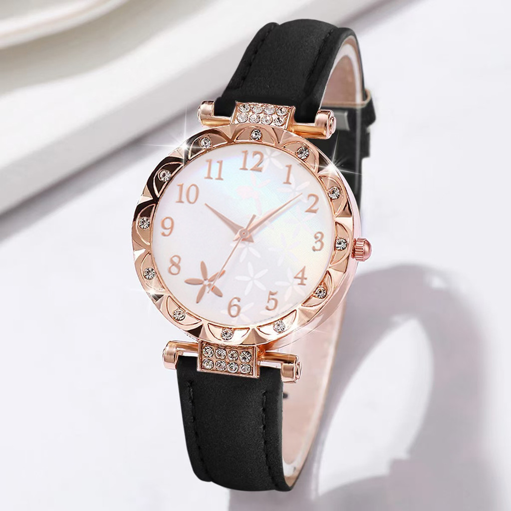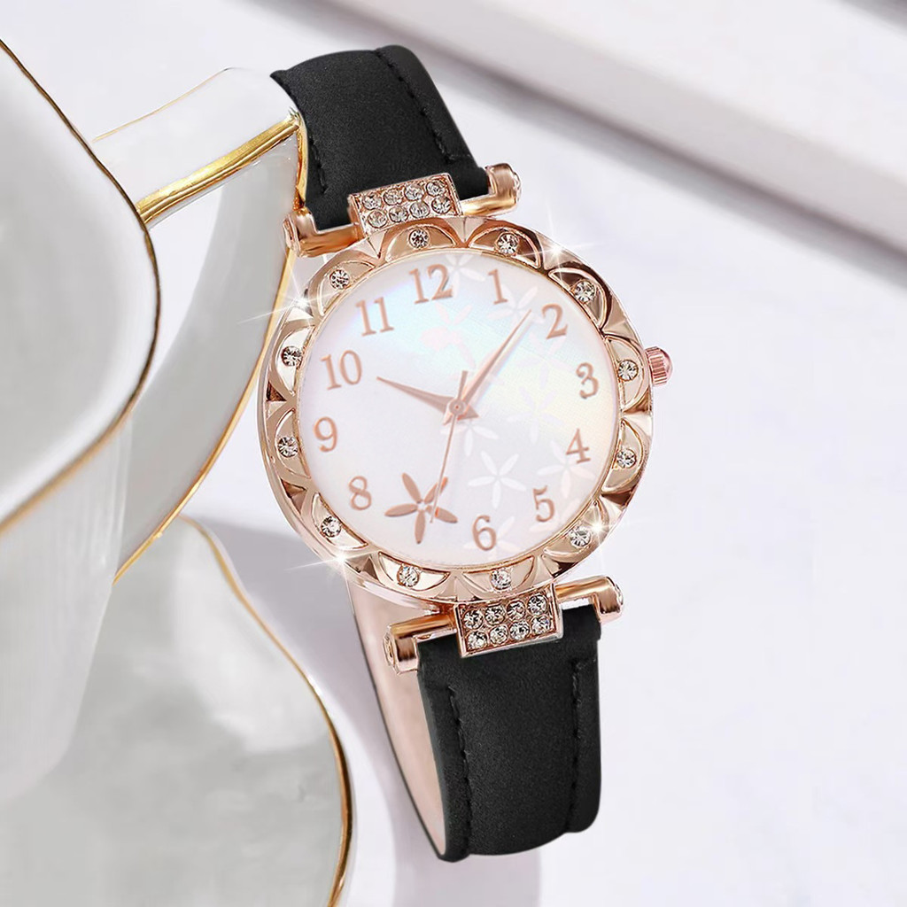 Conjunto De Relógio Com Pulseira De 6 Peças , Novo Feminino De Quartzo Preto De Luxo E Elegante