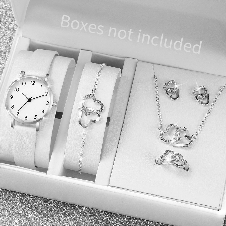 Conjunto De Relógio De Quartzo Casual Feminino , 6 Peças , Com Joias De Diamante , Pulseira , Colar , Brincos , Presente