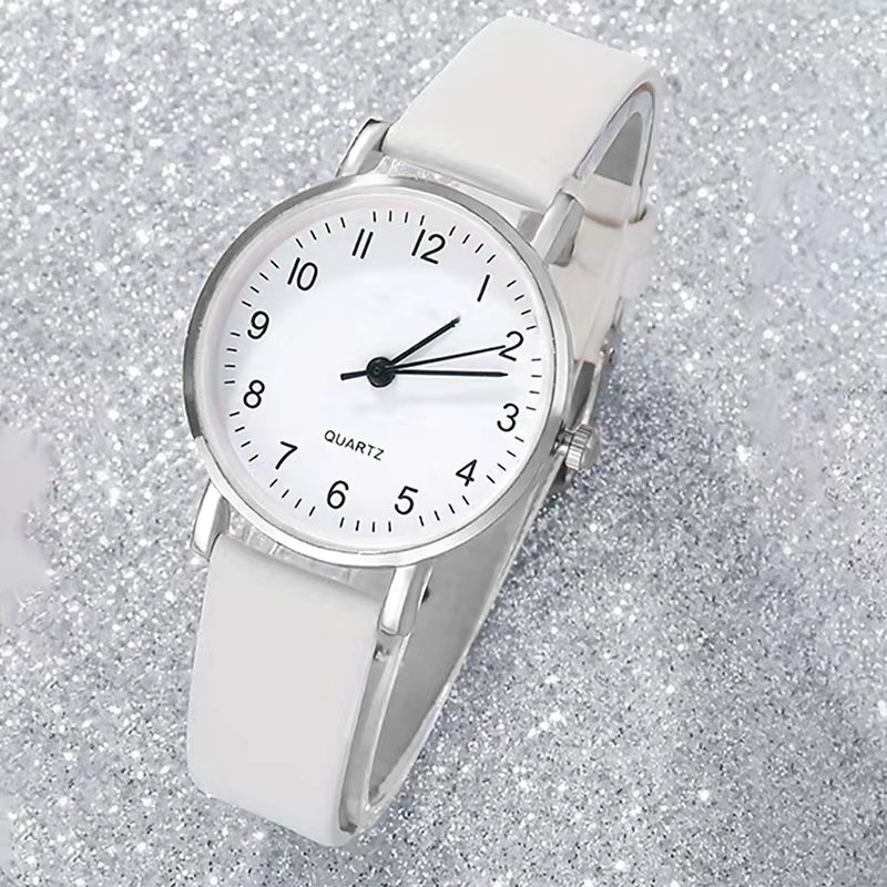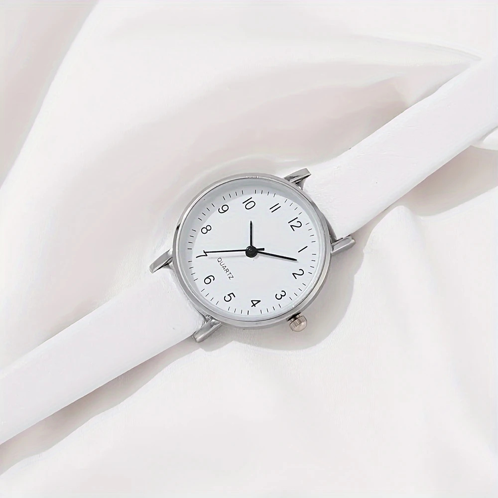 Conjunto De Relógio De Quartzo Feminino Elegante Pulseira De Couro Com Aço Inoxidável Para Uso Diário E De Férias