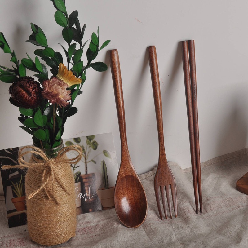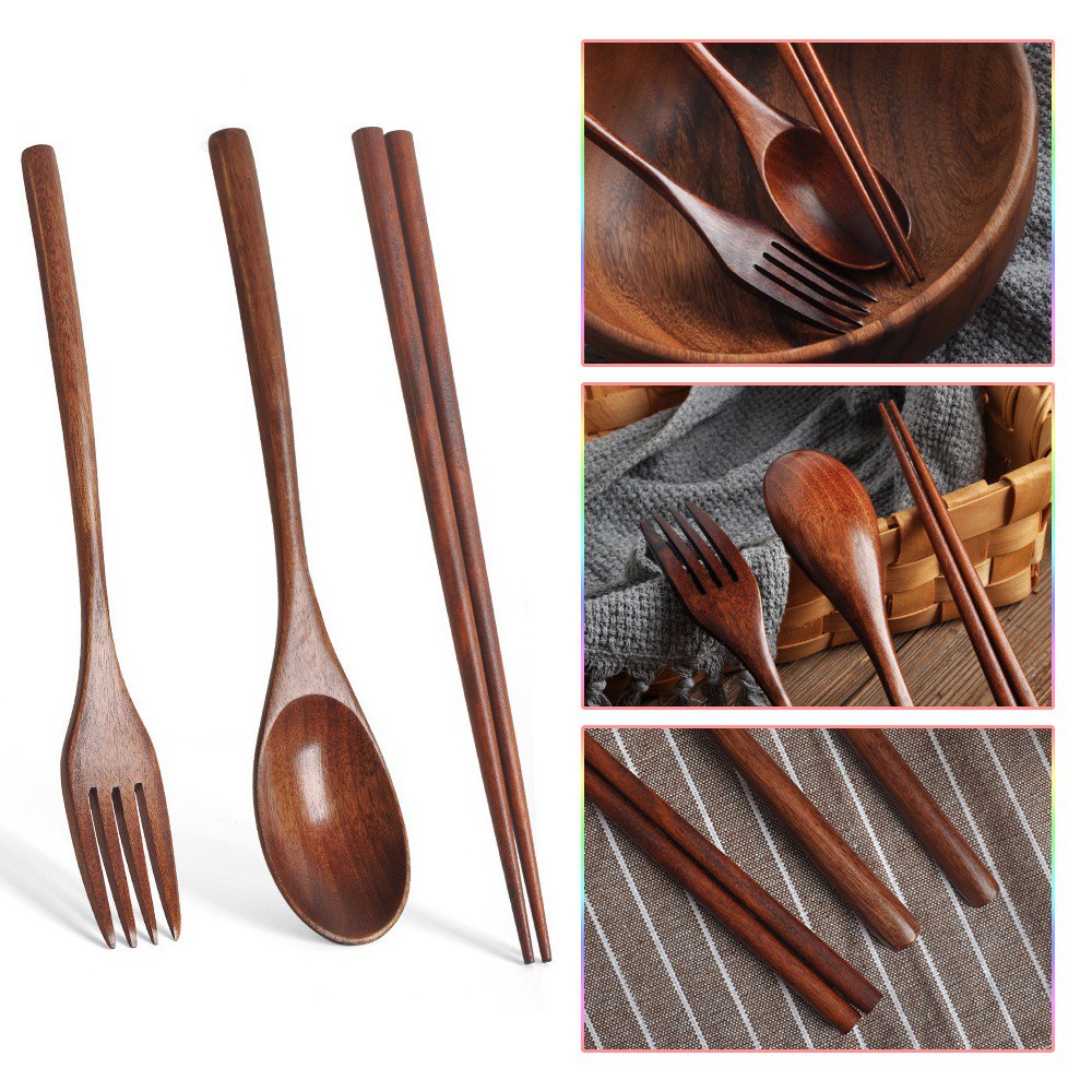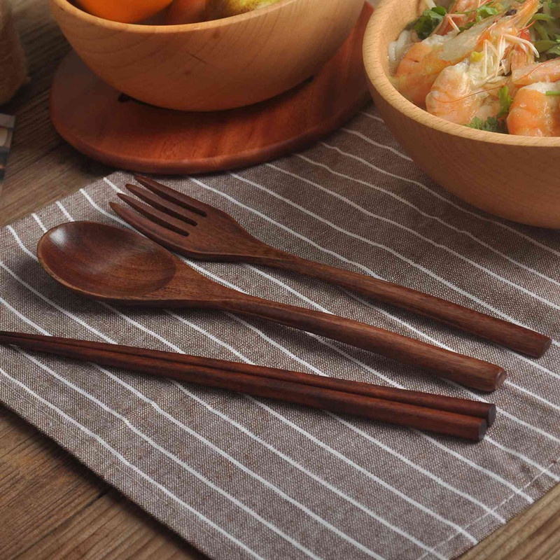 Conjunto De Talheres De Madeira Ecológico-Utensílios Reutilizáveis Portáteis (Colher , Garfo , Pauzinhos)