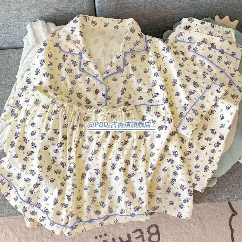 Conjunto De Três Peças De Verão : Pijama Fino Em Nuvem Para Mulheres , Lindo E Doce , Nó De Borboleta , Roupa De Casa