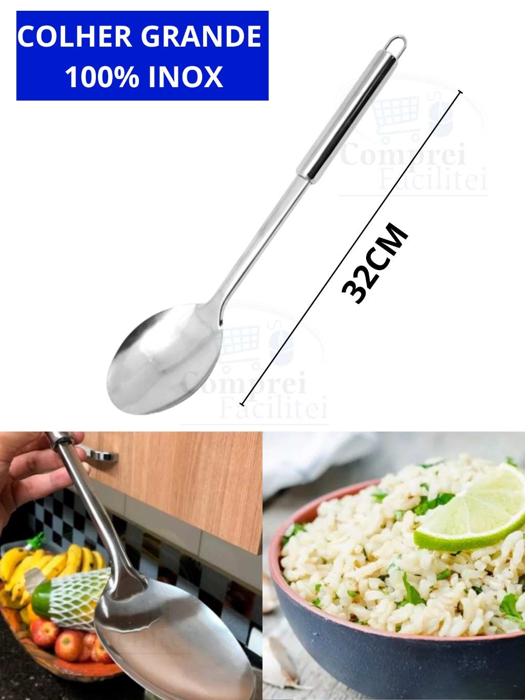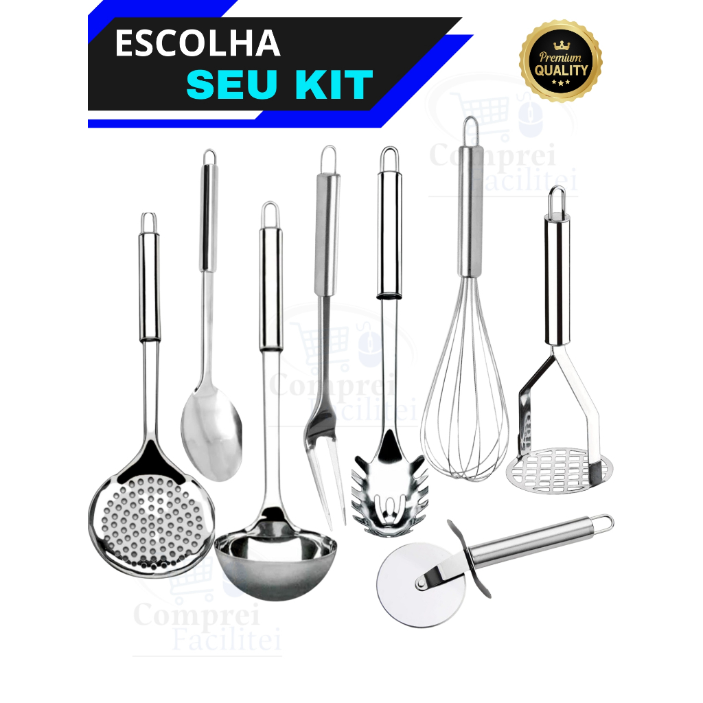 Conjunto De Utensílios De Cozinha 100% Inox Talheres Escumadeira