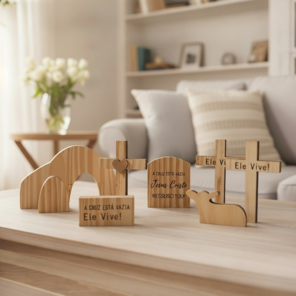 Conjunto ELE Vive - Decoração Páscoa Católica - Objetos de decoração para Páscoa