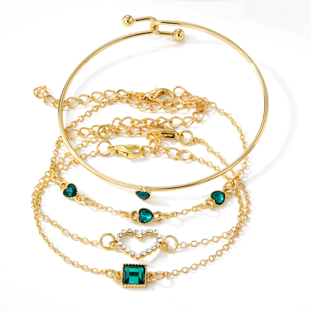 Conjunto Elegante De Pulseira De Coração Esmeralda Em Forma De Lágrima-Coleção De Pulseiras De 4 Peças