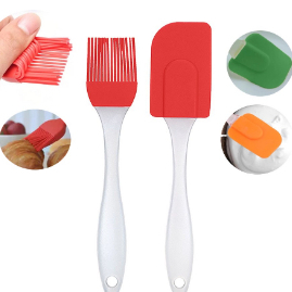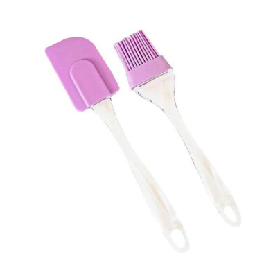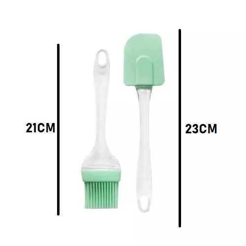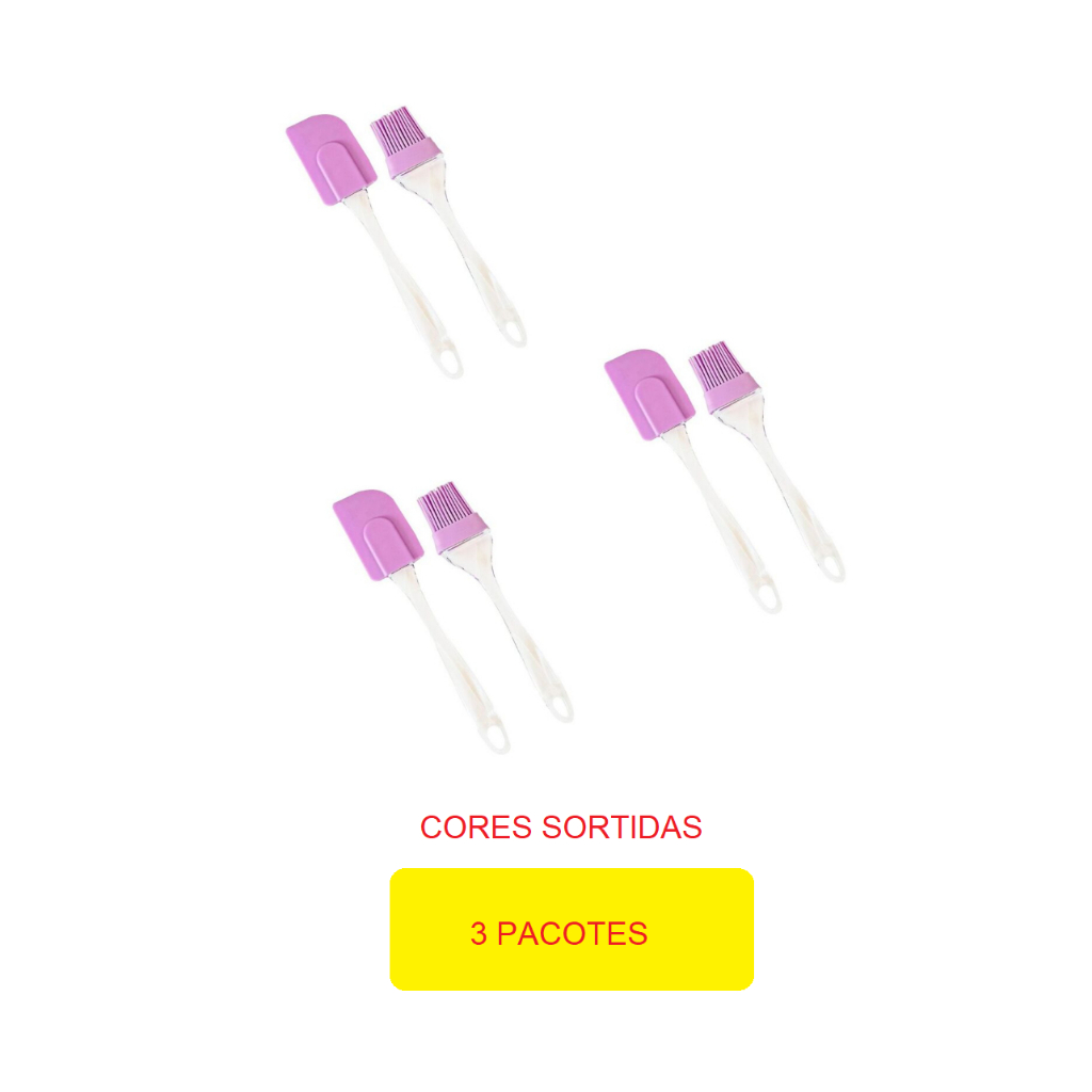 Conjunto Espátula Pão Duro E Pincel Silicone 21cm e 23cm Culinário Cabo Acrílico Resistente Multiuso Universal Multicolorido