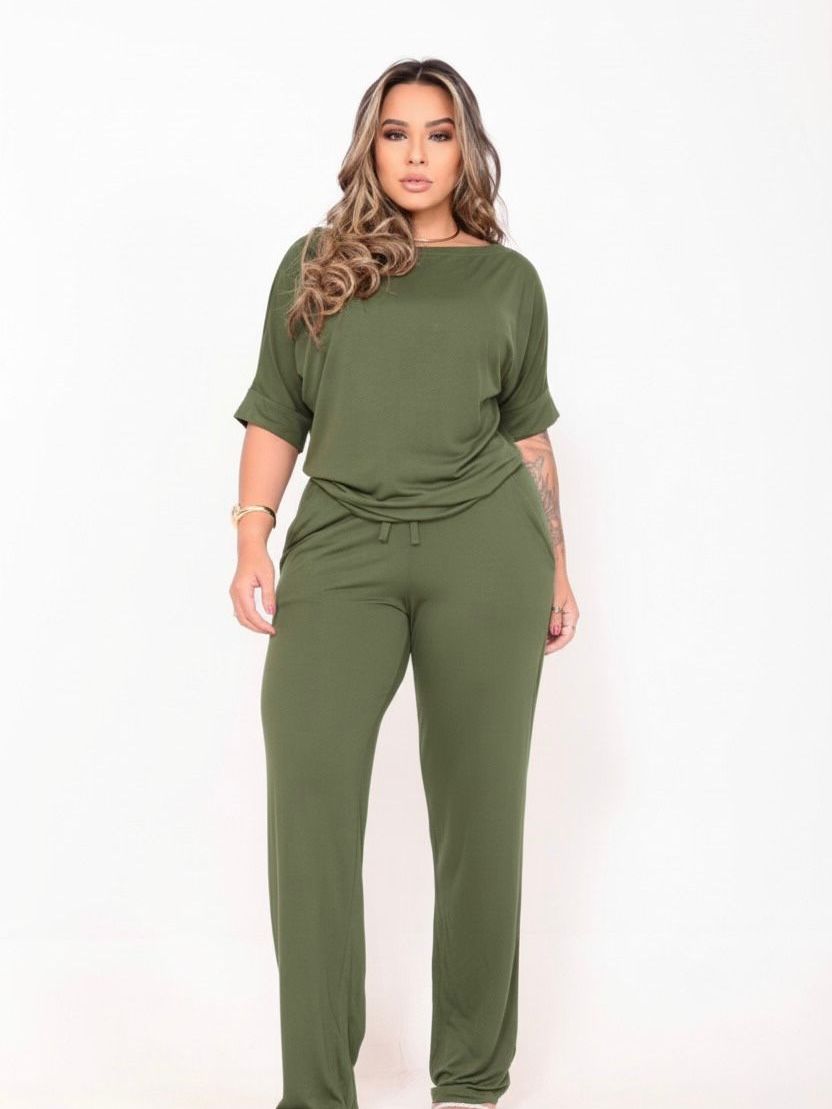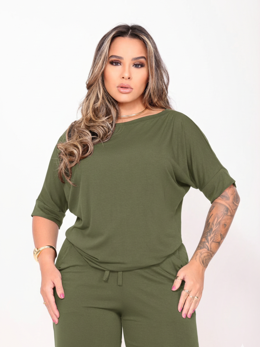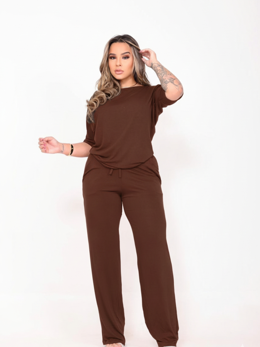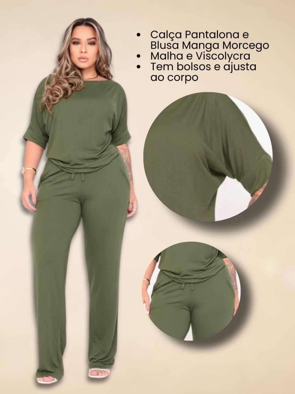 Conjunto Feminino de Malha Lisa Calça e Blusa linha PREMIUM