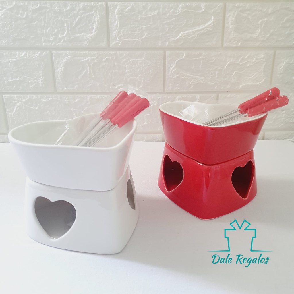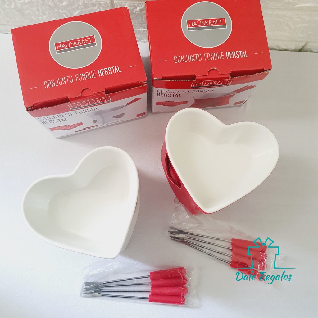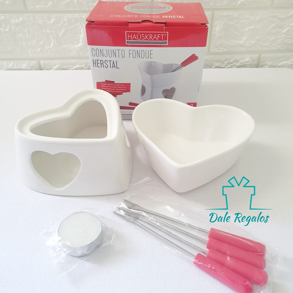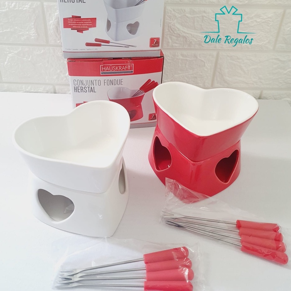 Conjunto Fondue Aparelho Ceramica Herstal Coração Pequeno 7 peças Hauskraft