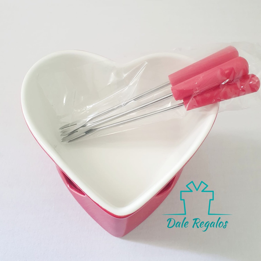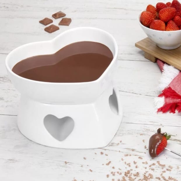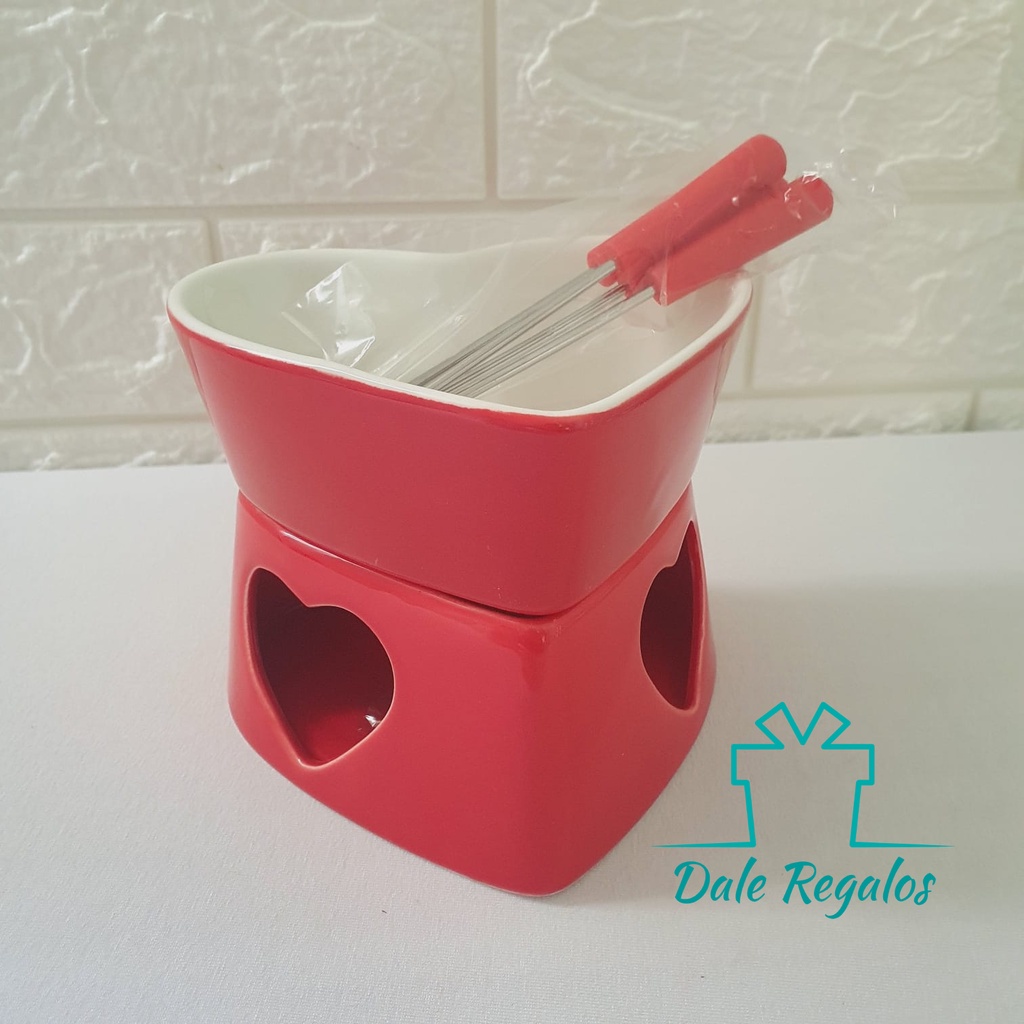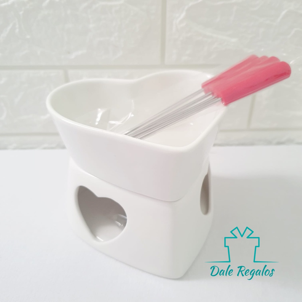 Conjunto Fondue Aparelho Ceramica Herstal Coração Pequeno 7 peças Hauskraft