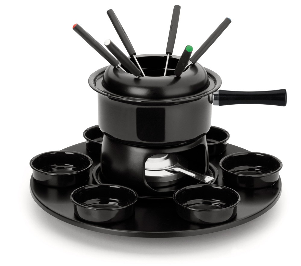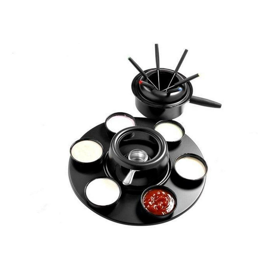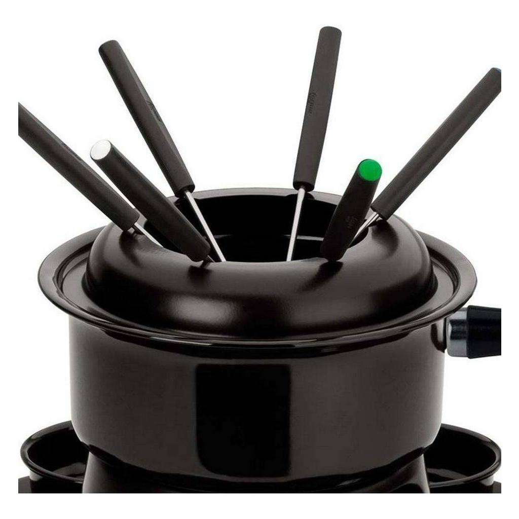 Conjunto Fondue Lugano Carroussel 17 peças Forma Inox Preto Giratorio Alta qualidade