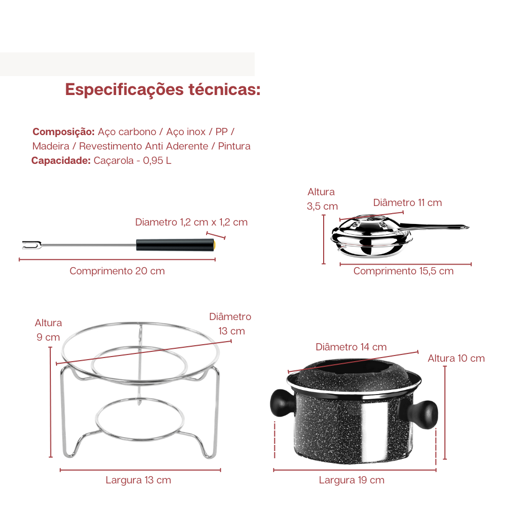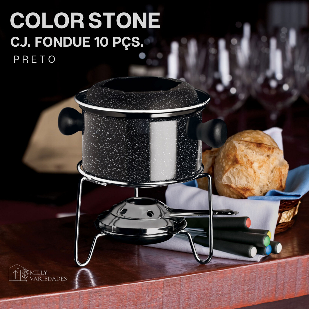 Conjunto Fondue Pequeno Antiaderente 10 pçs Para 6 Pessoas Colorstone Euro