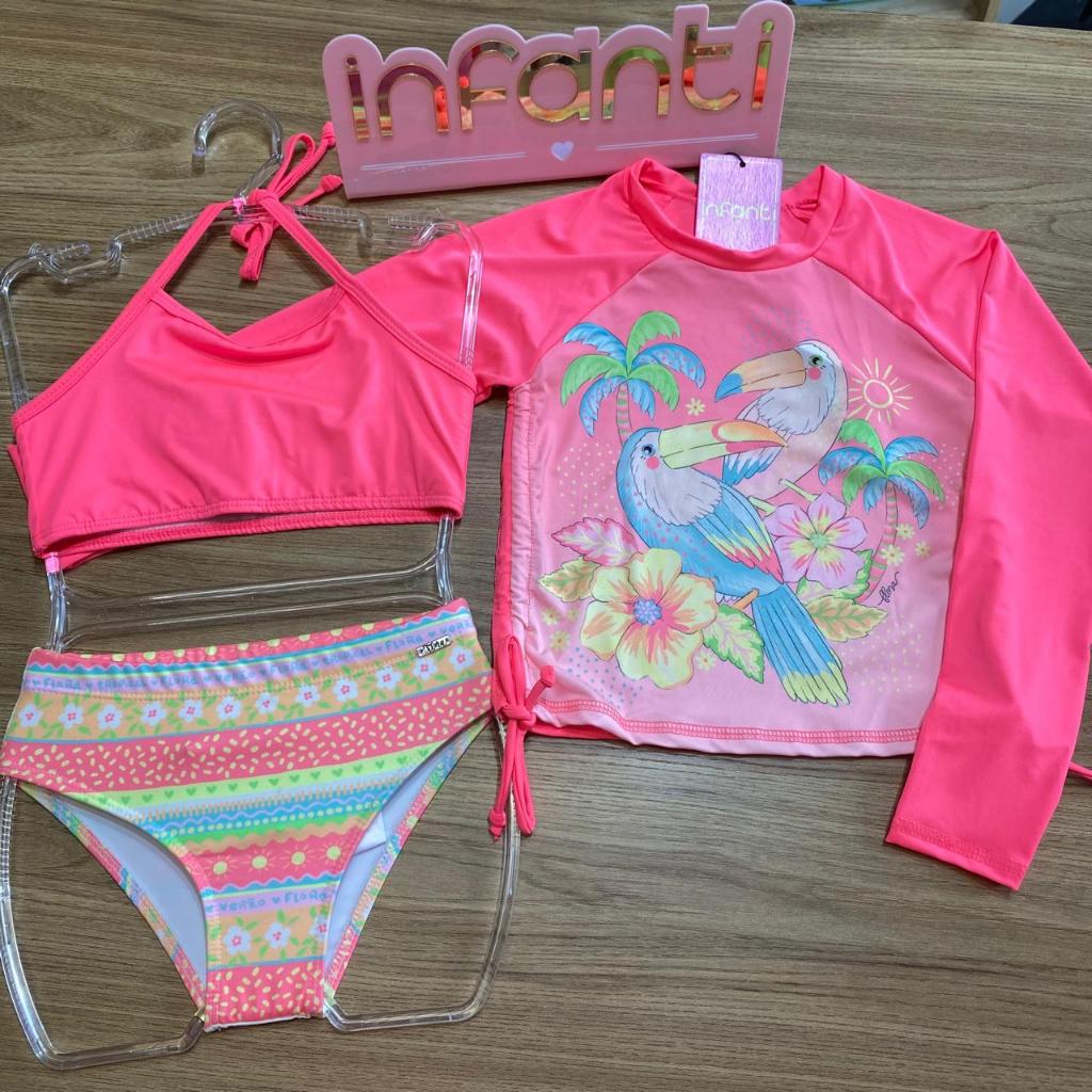 Conjunto Infantil Menina Moda Praia Biquini e Blusa Uv 50+