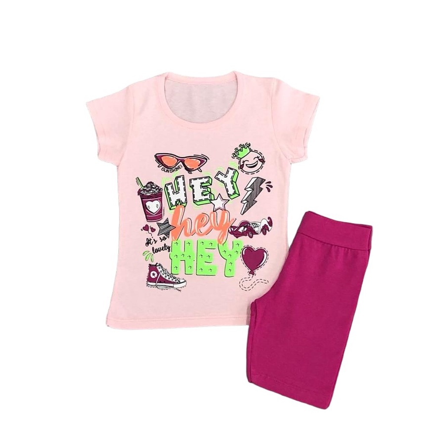 Conjunto Infantil Shorts Legging Estampado e Blusa Manga Curta Branca Tamanho 01 ao 14 Para Meninas