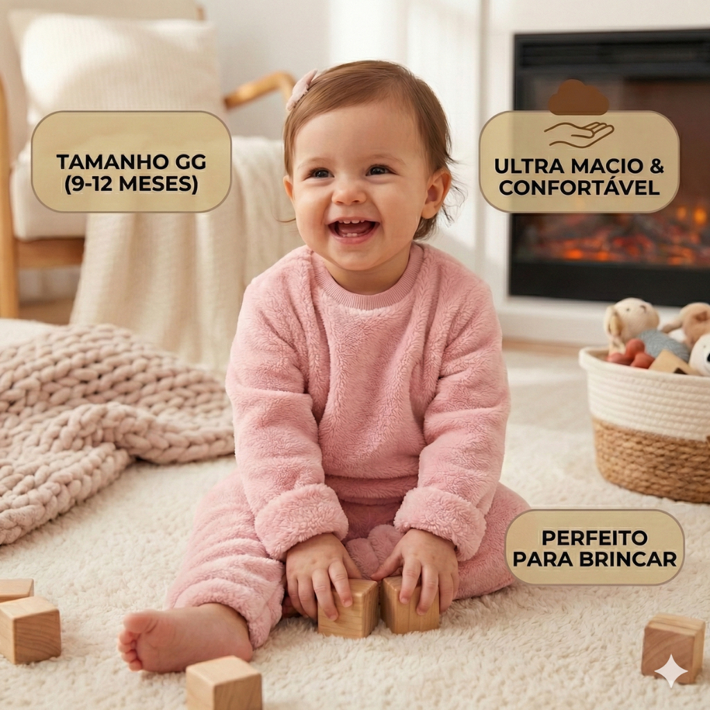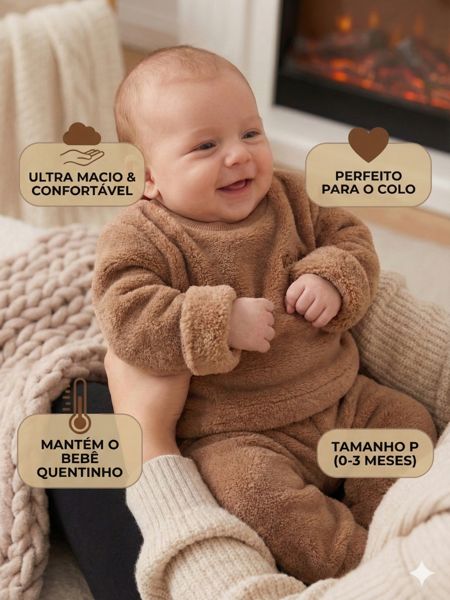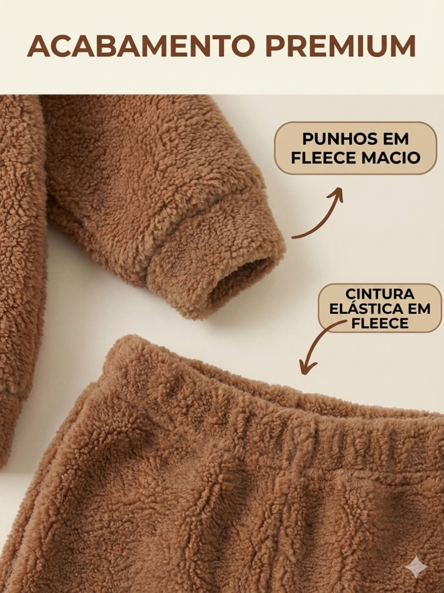 Conjunto Inverno Pijama Bebê Fleece Teddy Peluciado Casaco e Calça Quentinho Unissex