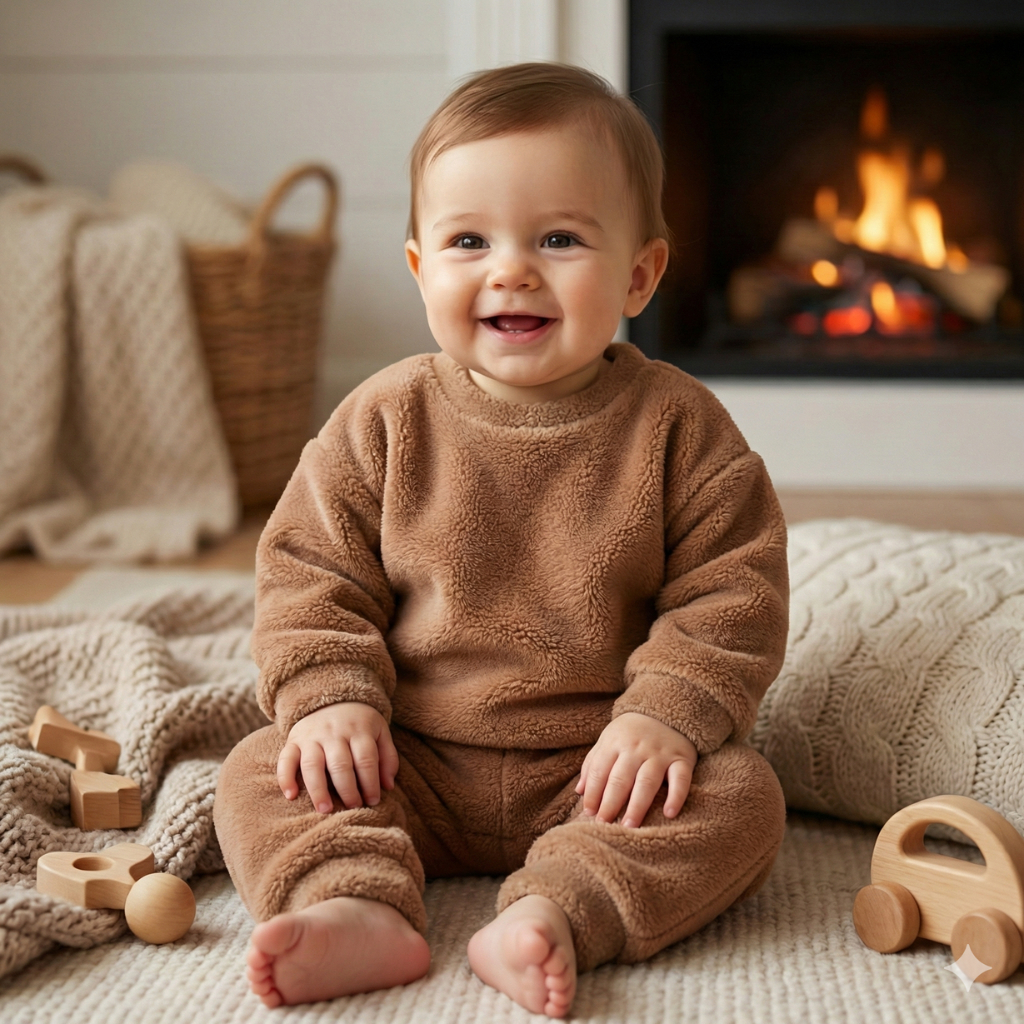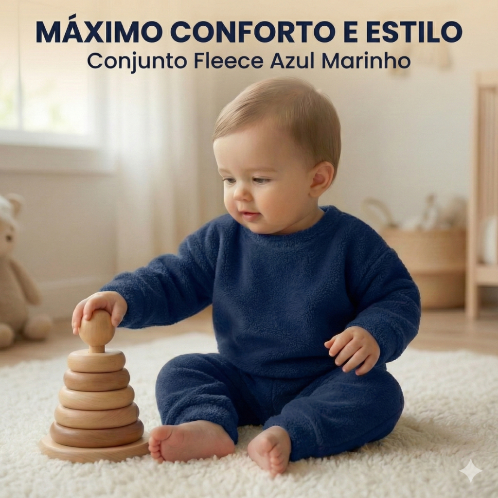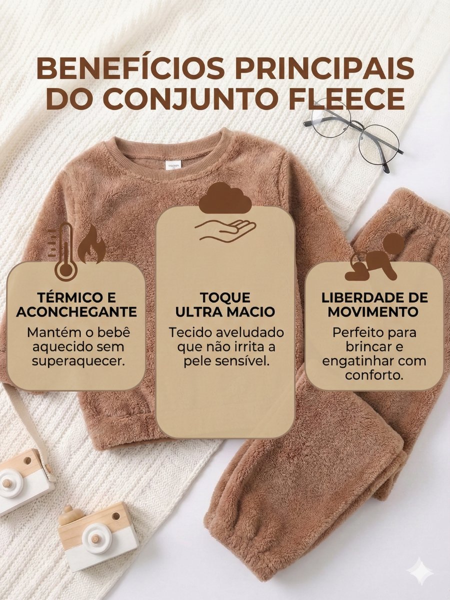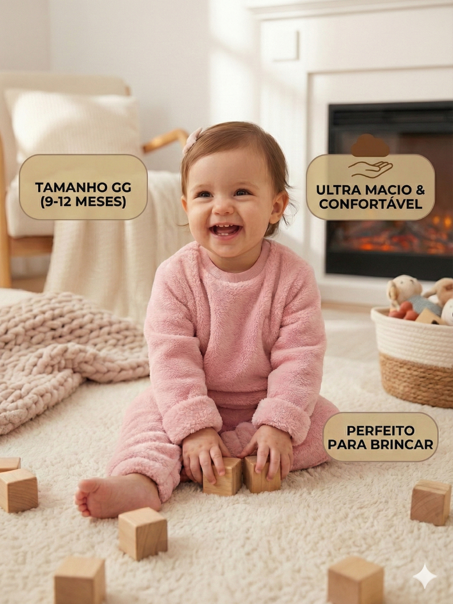 Conjunto Inverno Pijama Bebê Fleece Teddy Peluciado Casaco e Calça Quentinho Unissex