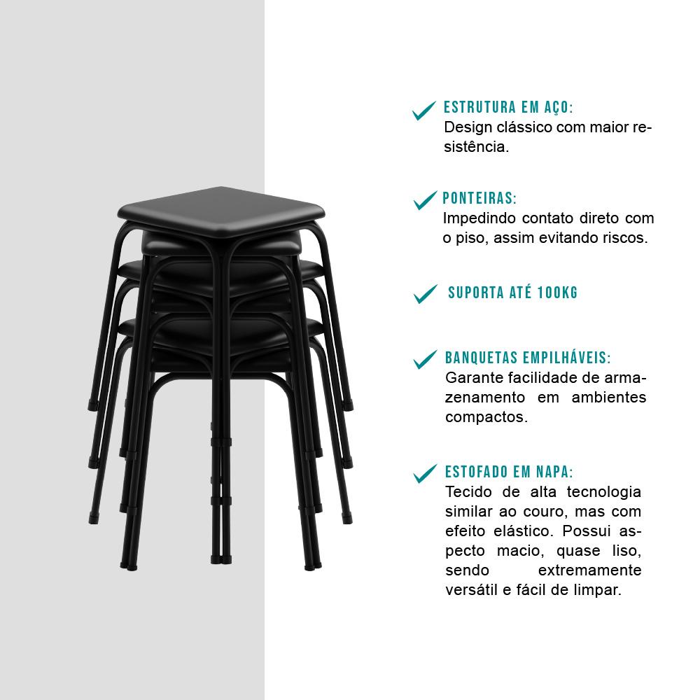 Conjunto Mesa Dobrável com 2 Banquetas Preto Carraro
