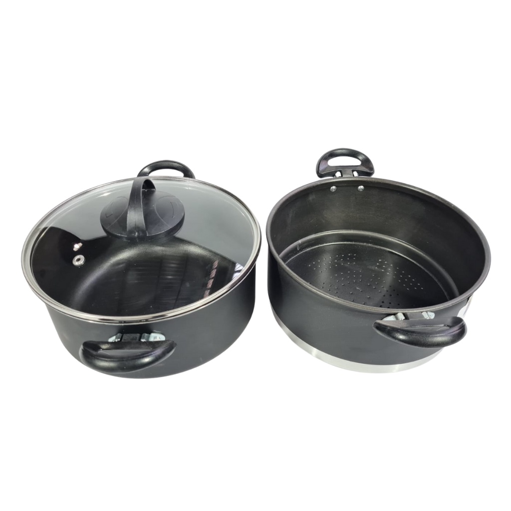 Conjunto Panela Cozimento A Vapor Antiaderente Tampa Vidro