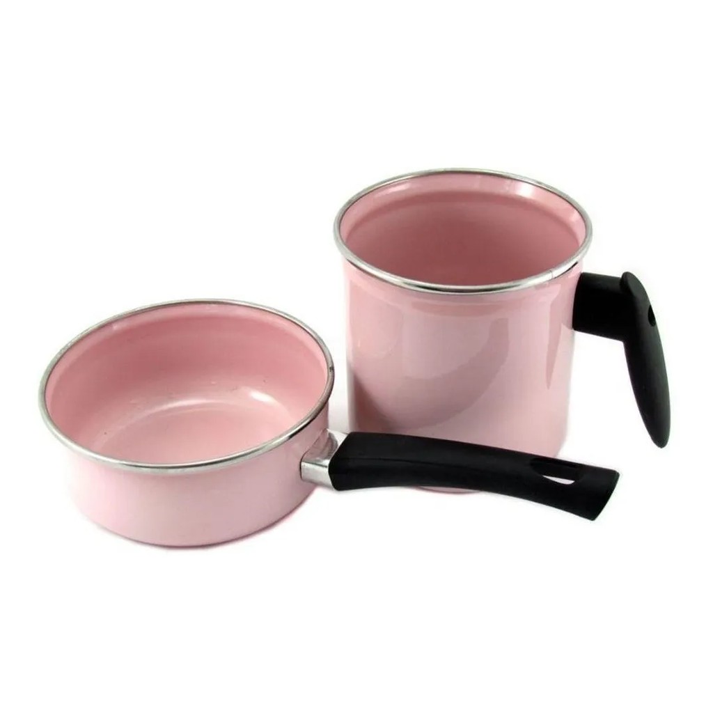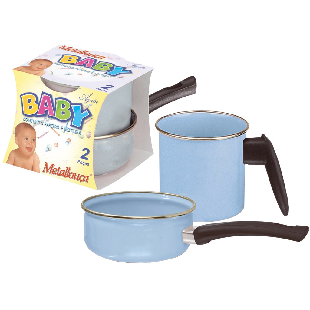 Conjunto Papeiro Leiteira Kids Esmaltado Metallouça Azul ou Rosa
