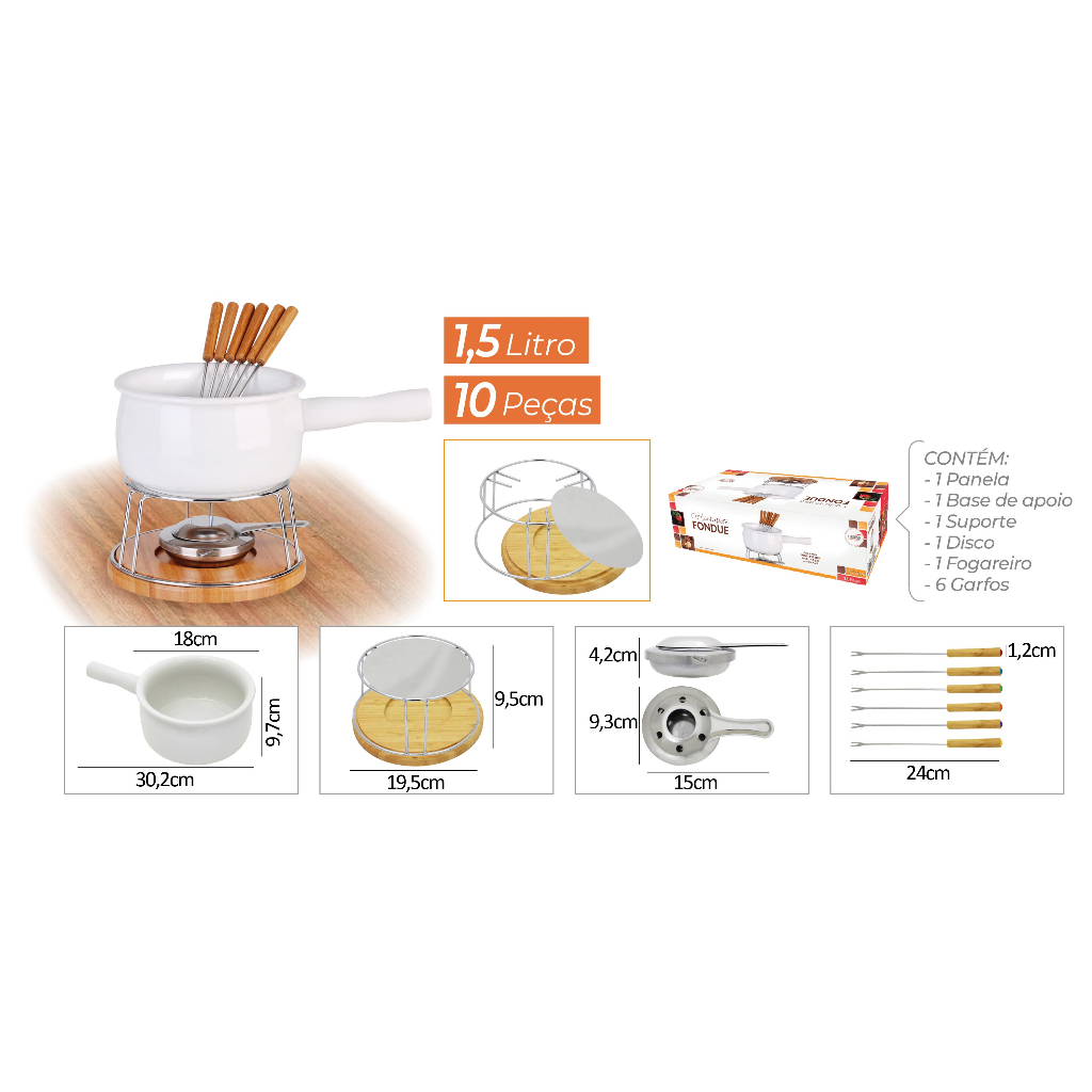 Conjunto Para Fondue Panela 1,5L 11 Peças Cerâmica Queijos Chocolate Envio Rápido