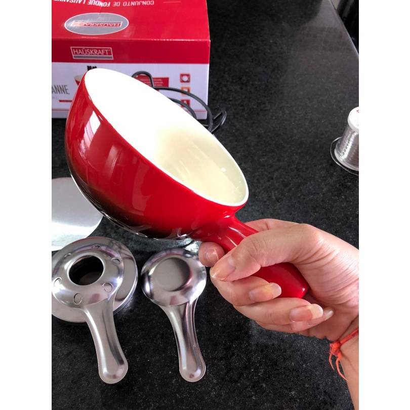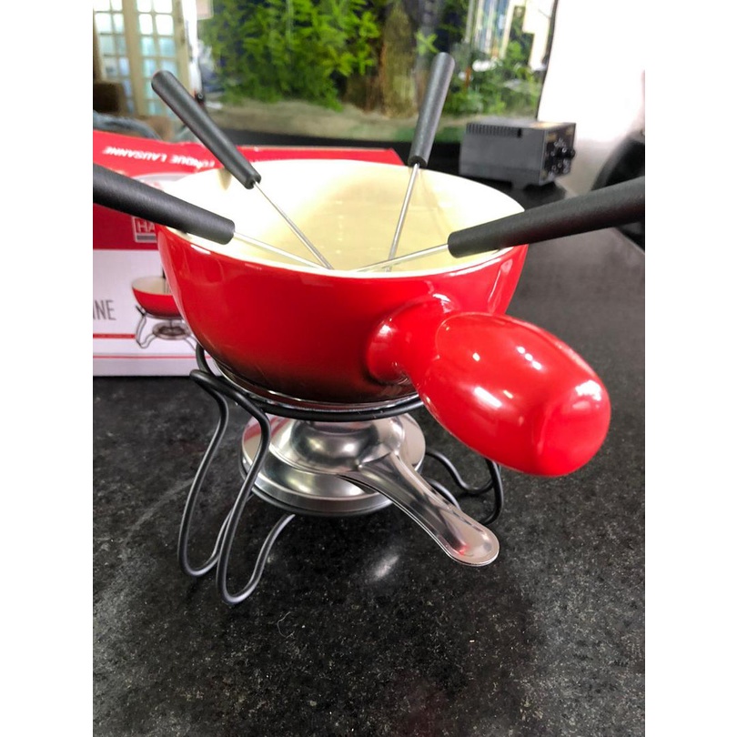 Conjunto Para Fondue panela Ceramica Fogareiro Lausanne 8 Peças serve 4 pessoas 700 ml