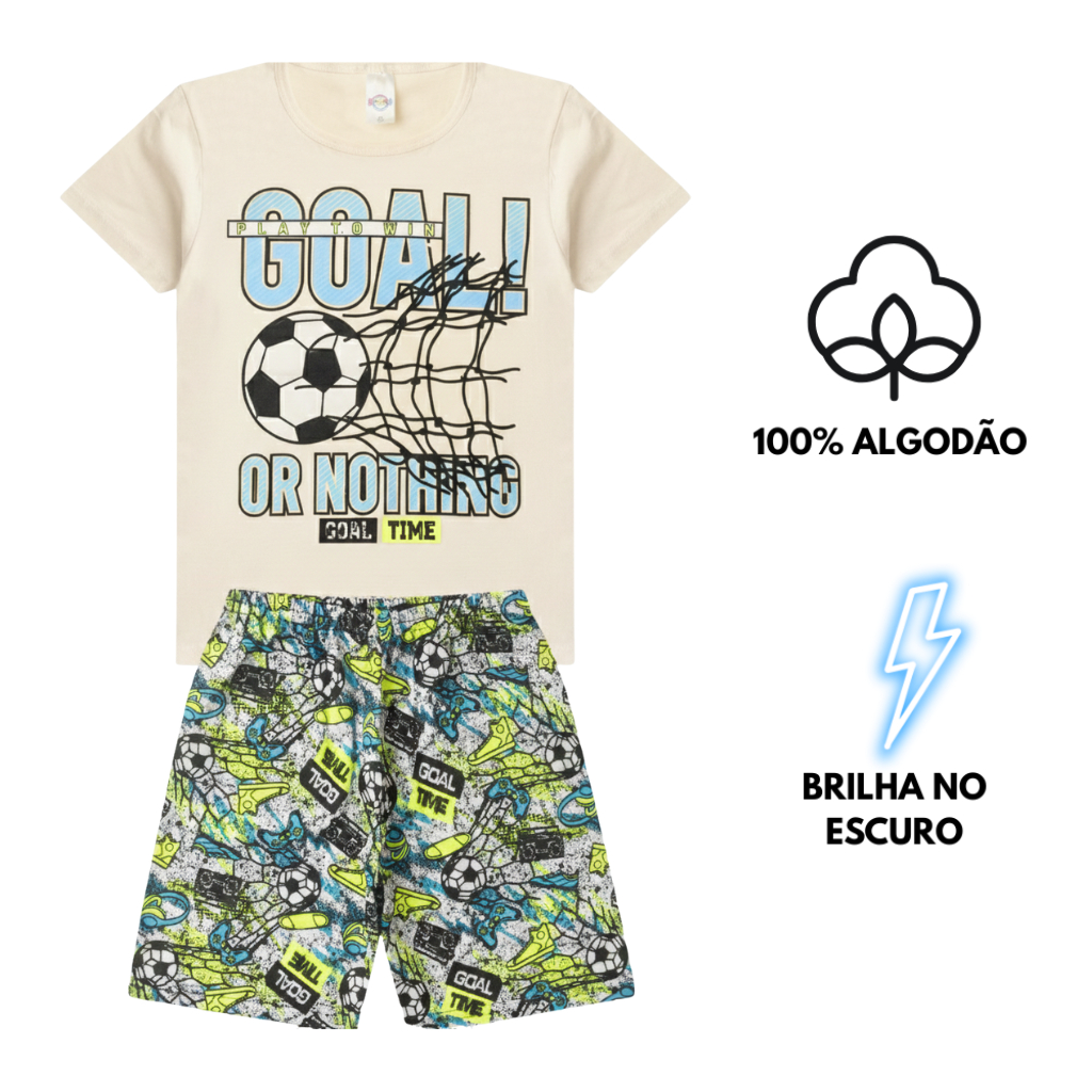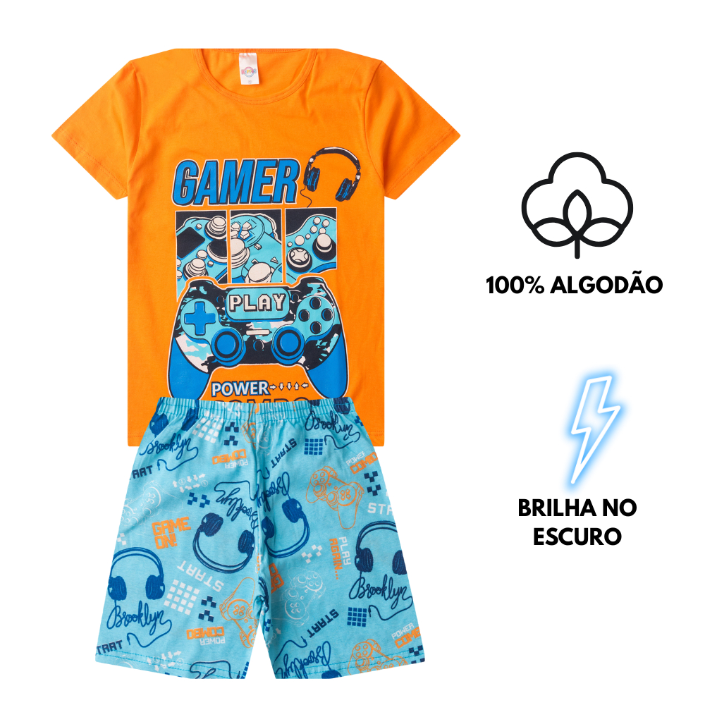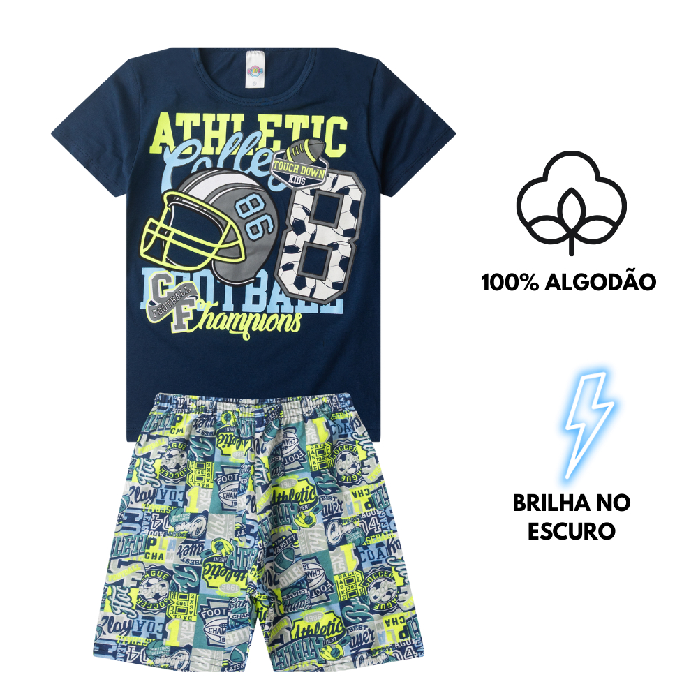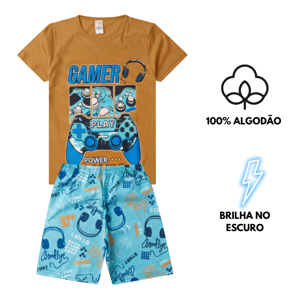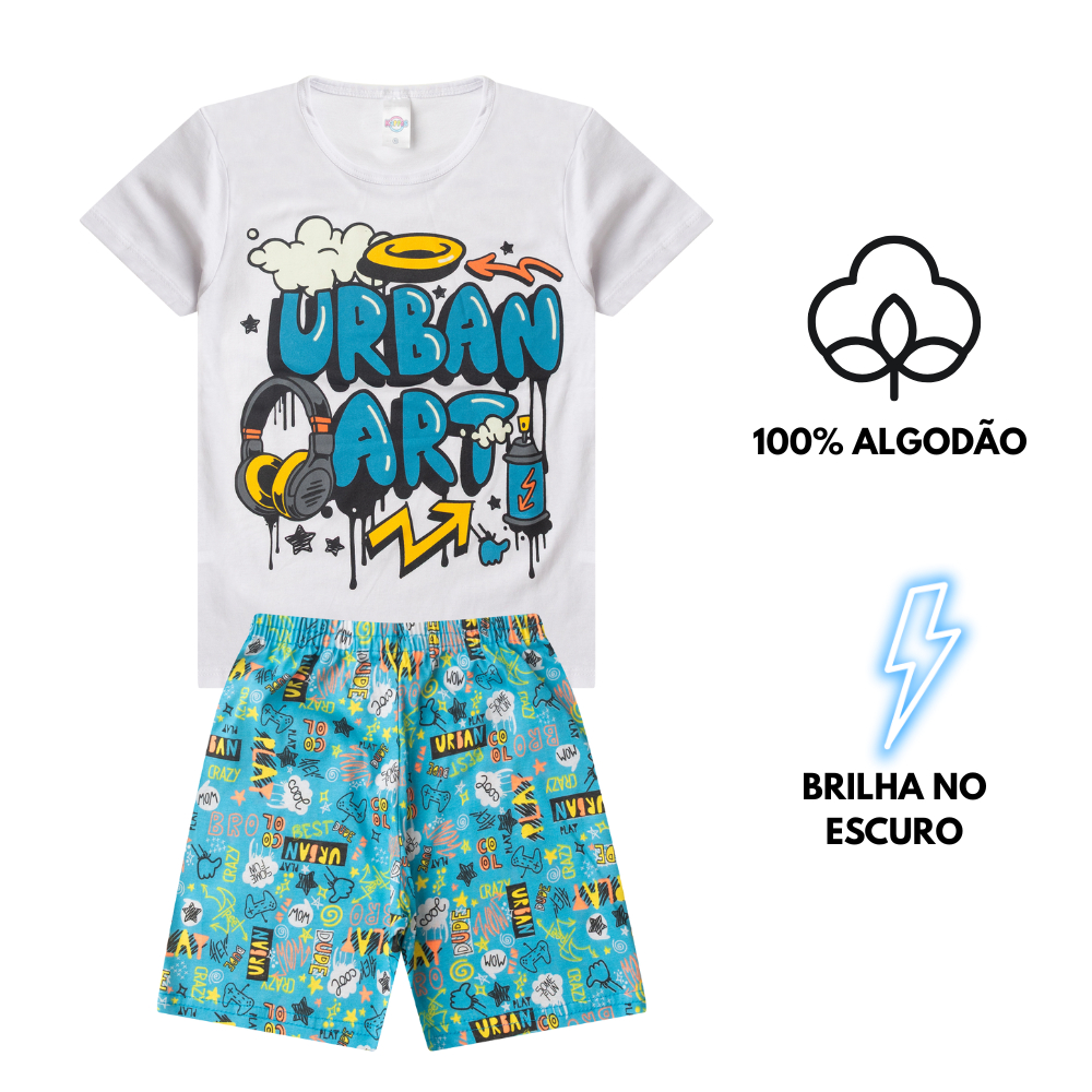 Conjunto Pijama Algodão Verão Juvenil MENINO 10 ao 16 Brilha no Escuro