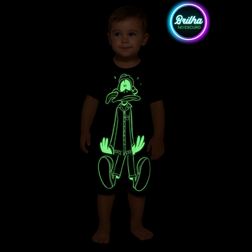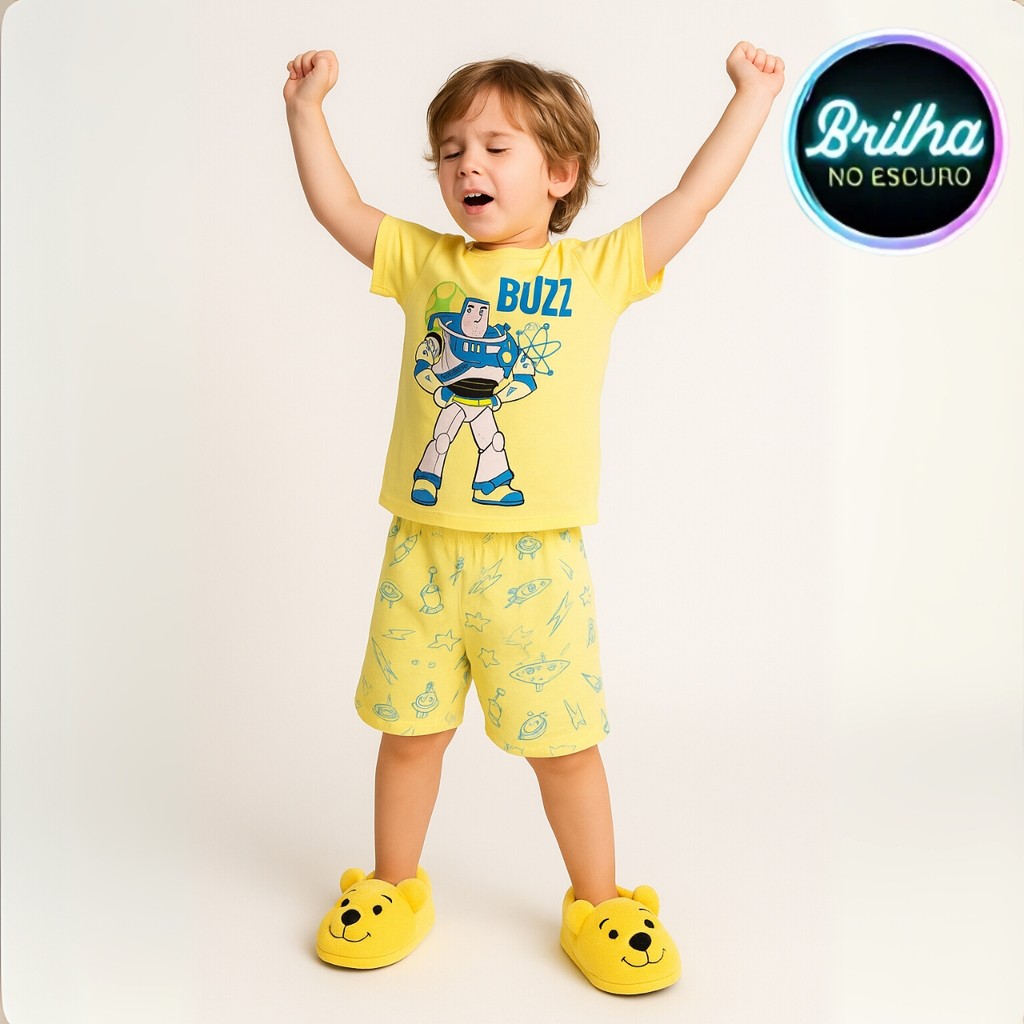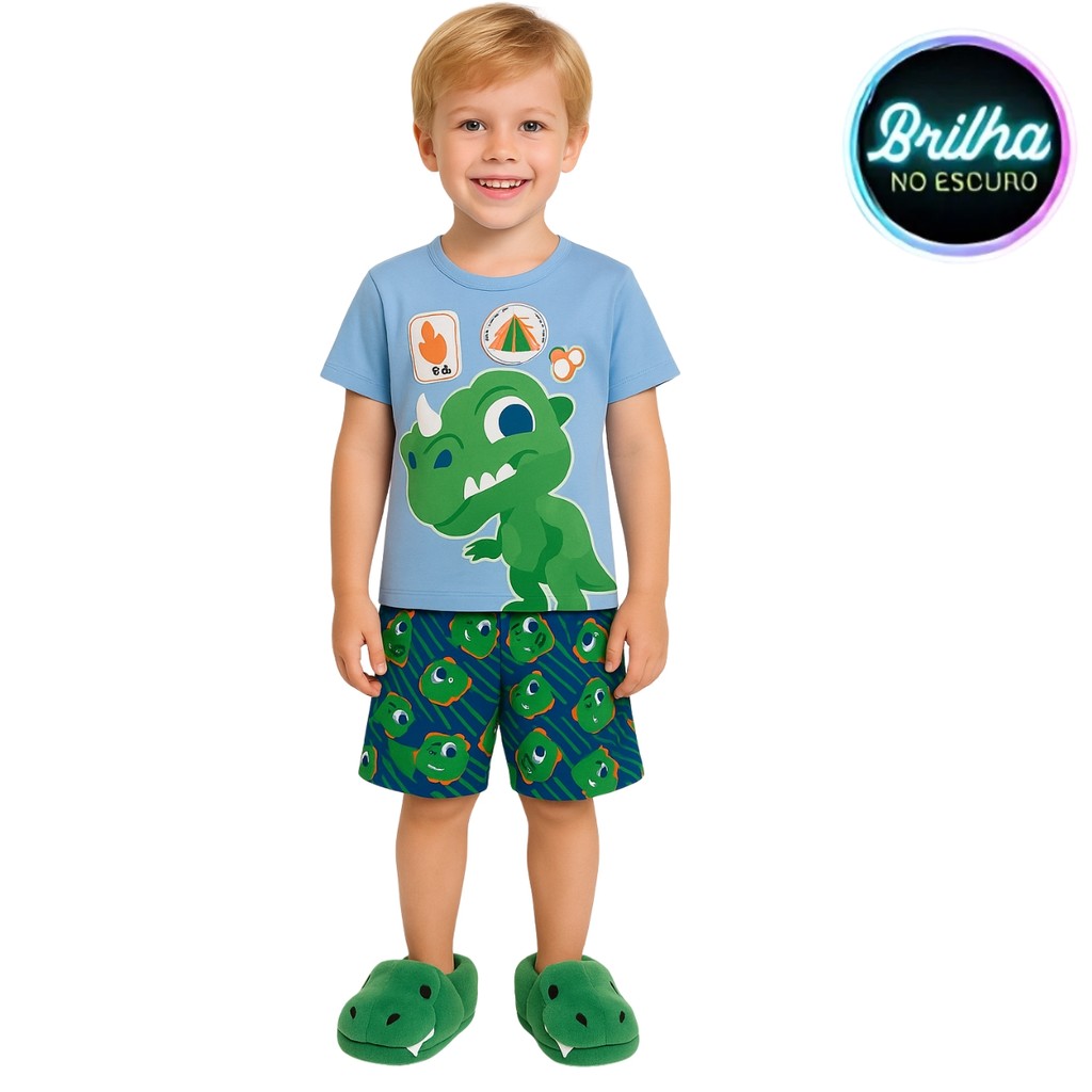 Conjunto Pijama Brilha no Escuro Personagens Menino Infantil Mickey Homem Aranha Dinossauro