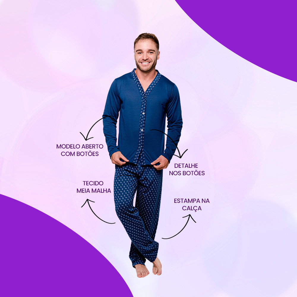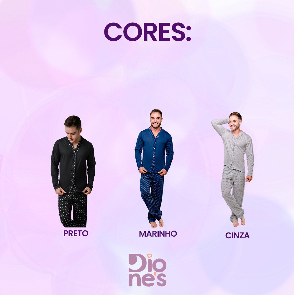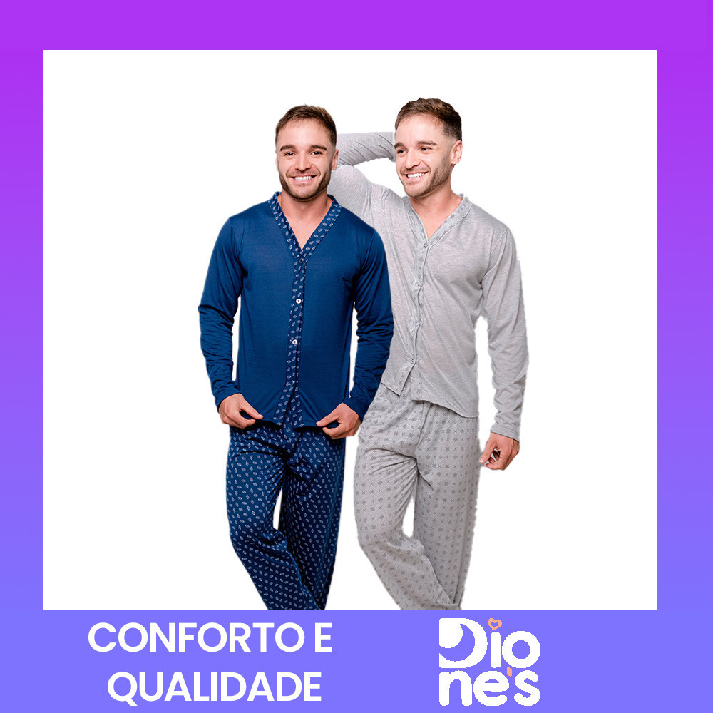 Conjunto Pijama Diones Original Inverno Estampado Manga Longa Modelagem Clássica Americana Masculino