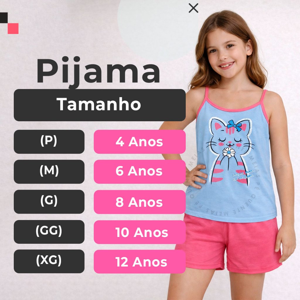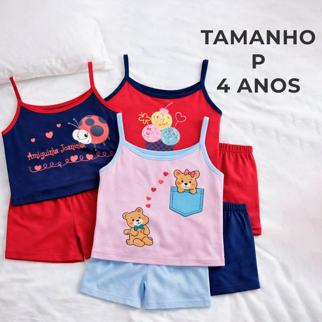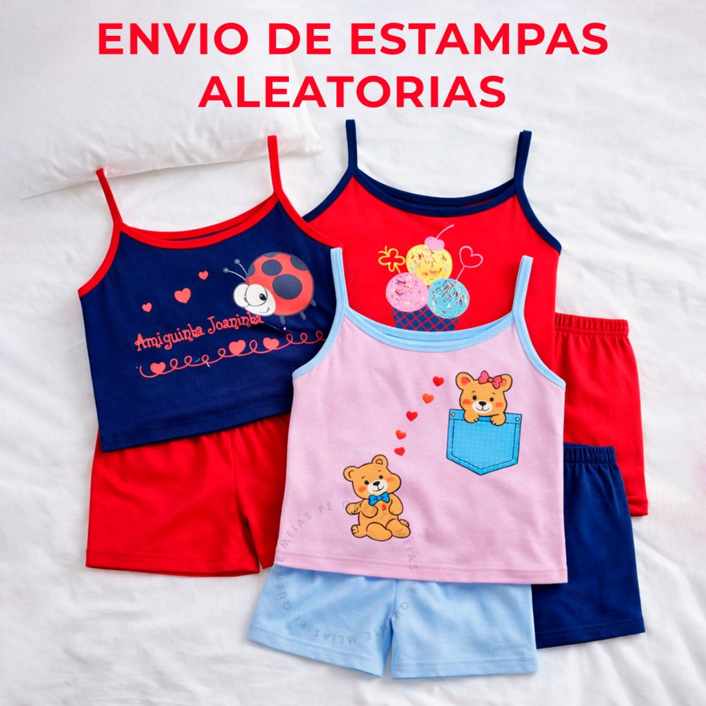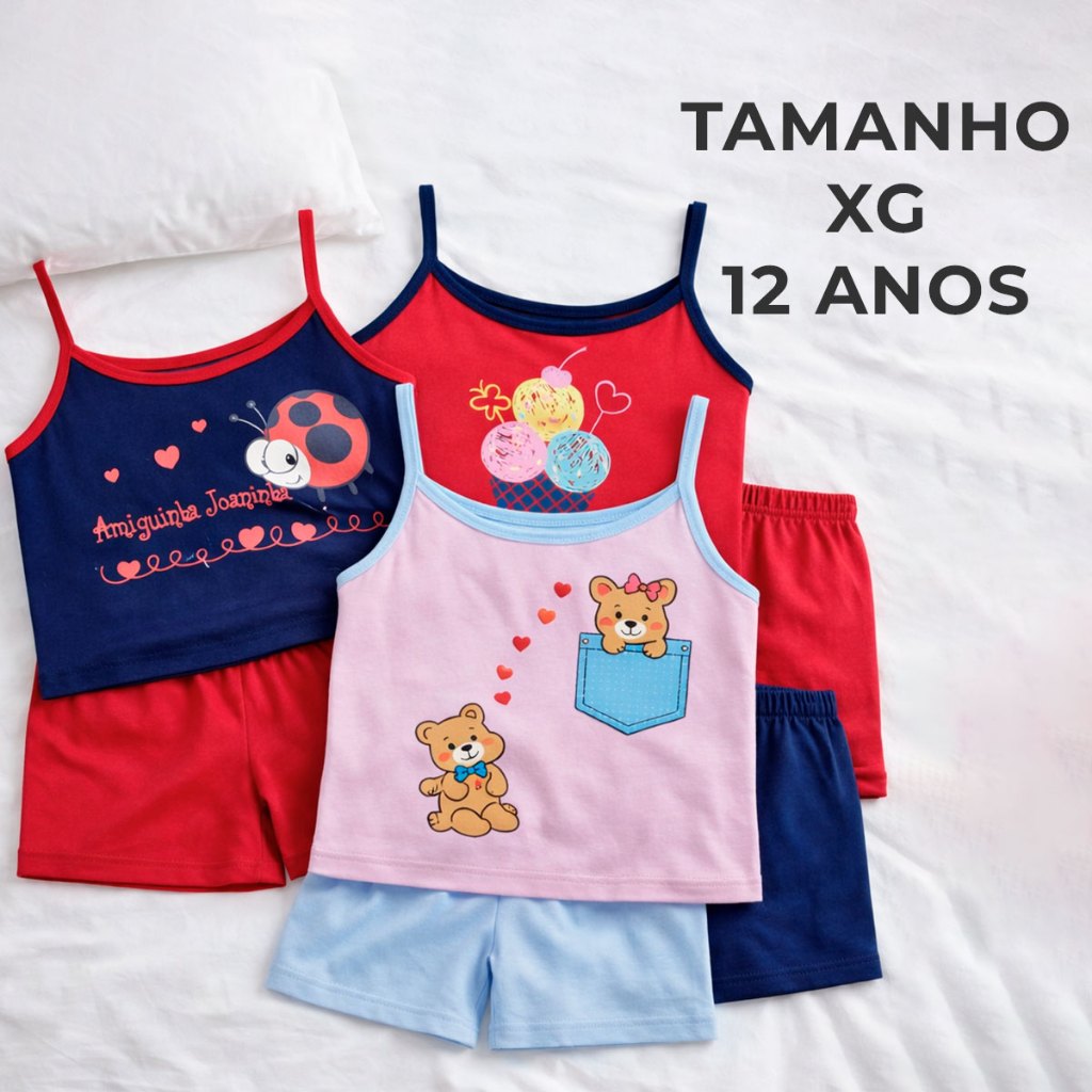 Conjunto Pijama de Alcinha Infantil 4 a 12 Anos Feminino Verão Confortável Estampado Regata Dormir