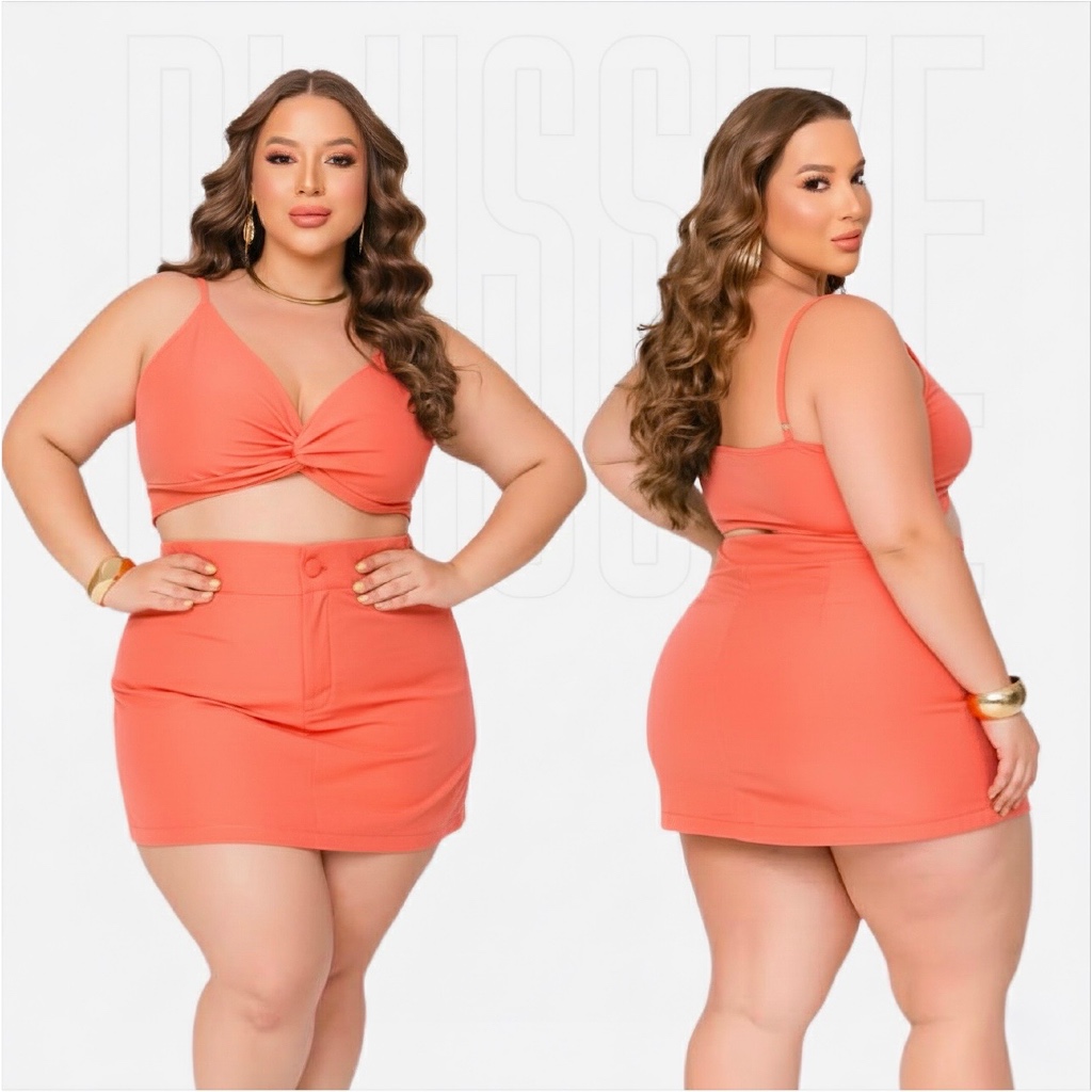 Conjunto Plus Size Feminino | Conjunto Plus Cropped + Short Saia