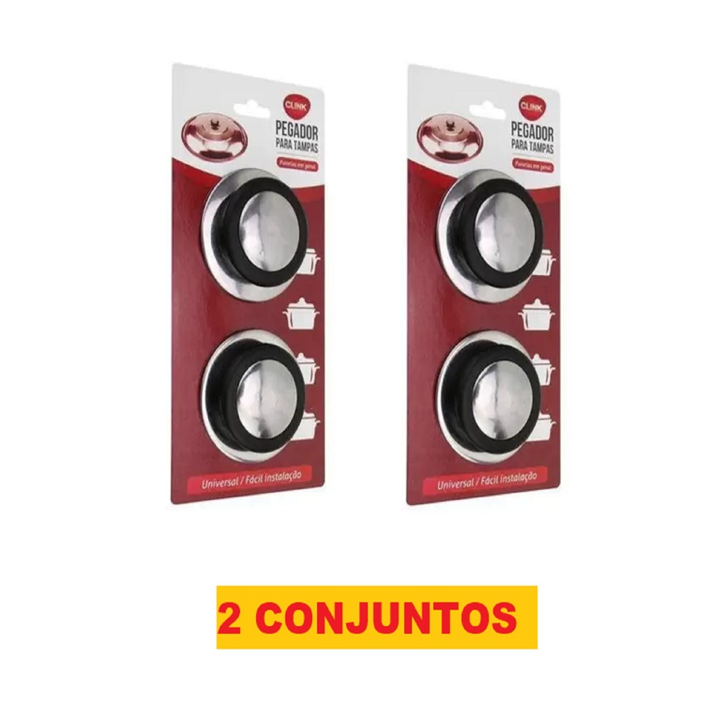Conjunto Pomel 5,8cm Pegador De Tampa Diâmetro Panela Aço Inox Baquelite Puxador Clink