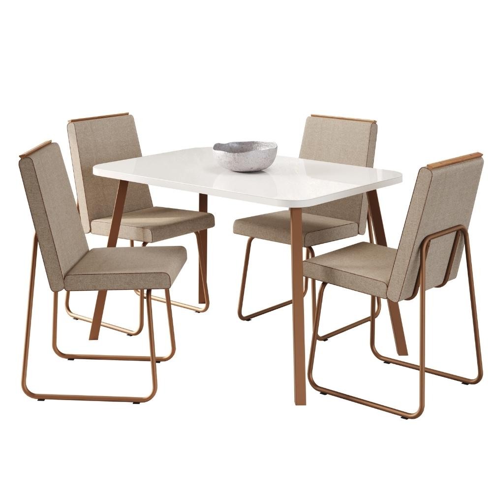 Conjunto Sala de Jantar 4 Cadeiras Creta Carraro Gelo e Rosê