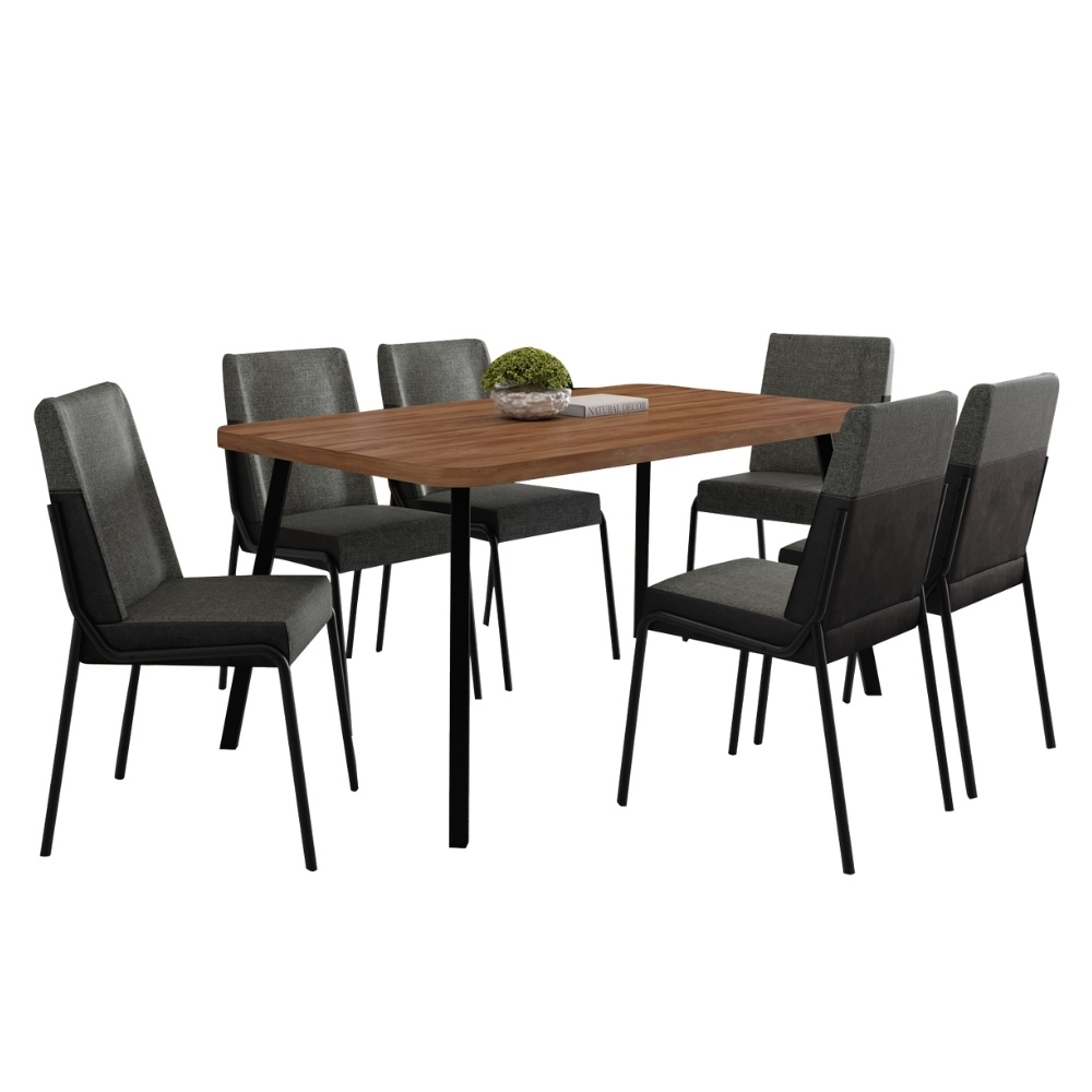 Conjunto Sala de Jantar 6 Cadeiras San Paolo Carraro Nogal Preto