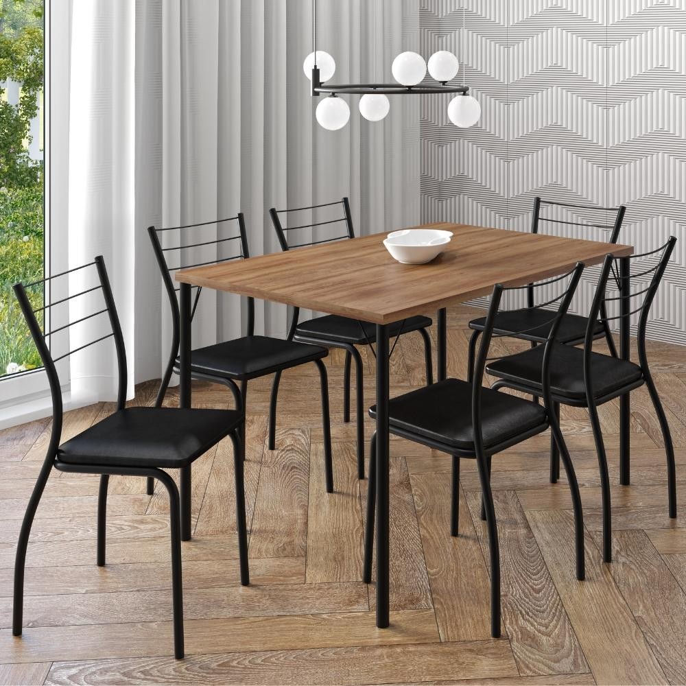 Conjunto Sala de Jantar 6 Cadeiras Valencia Carraro Freijó Preto