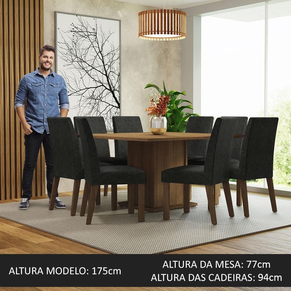 Conjunto Sala de Jantar Mesa Tampo de Madeira 8 Cadeiras Rustic/Oxford Doris Madesa