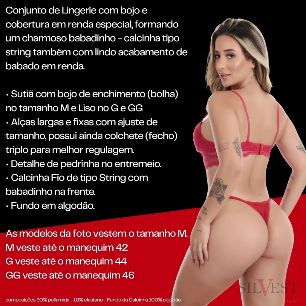 Conjunto Sensual De Bojo Com Renda Babadinho Fio Dental | Eline