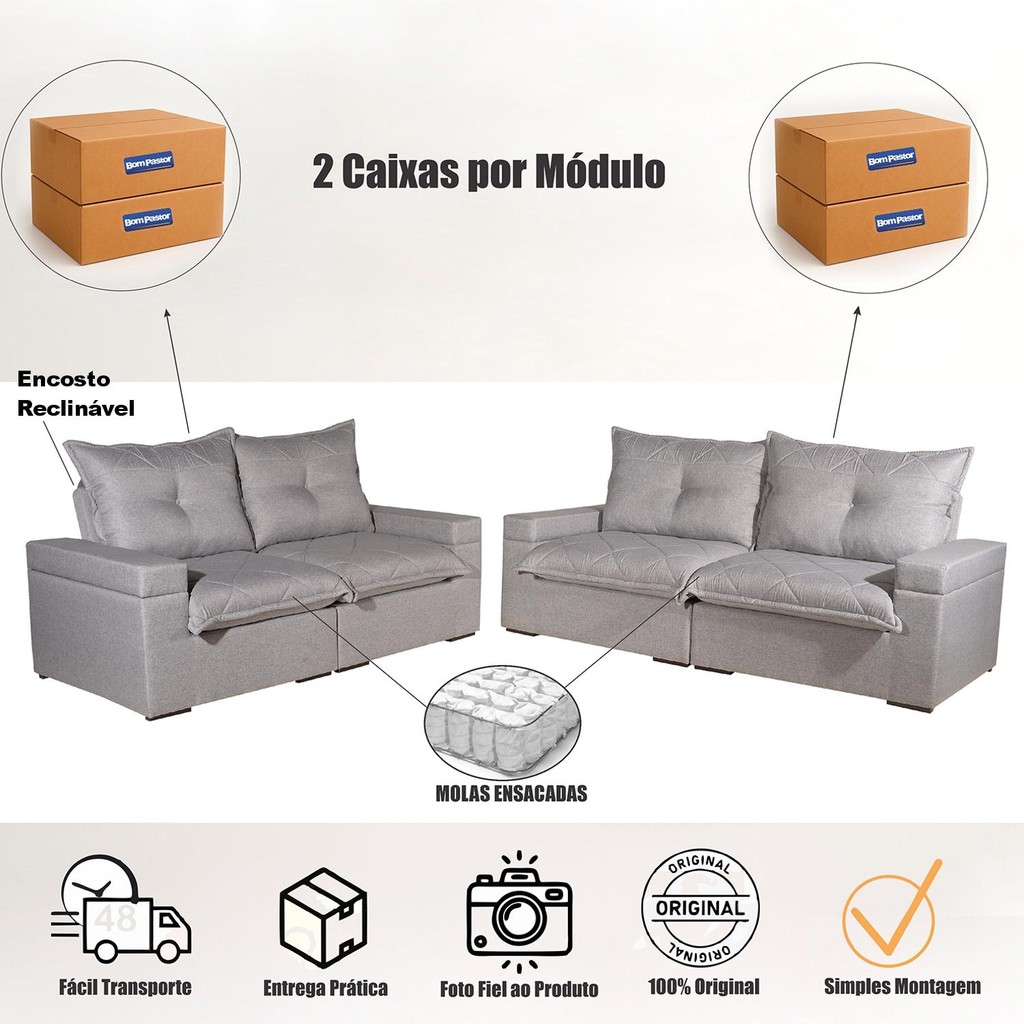 Conjunto Sofá 3x2 Lugares Reclinável Tera Bom Pastor