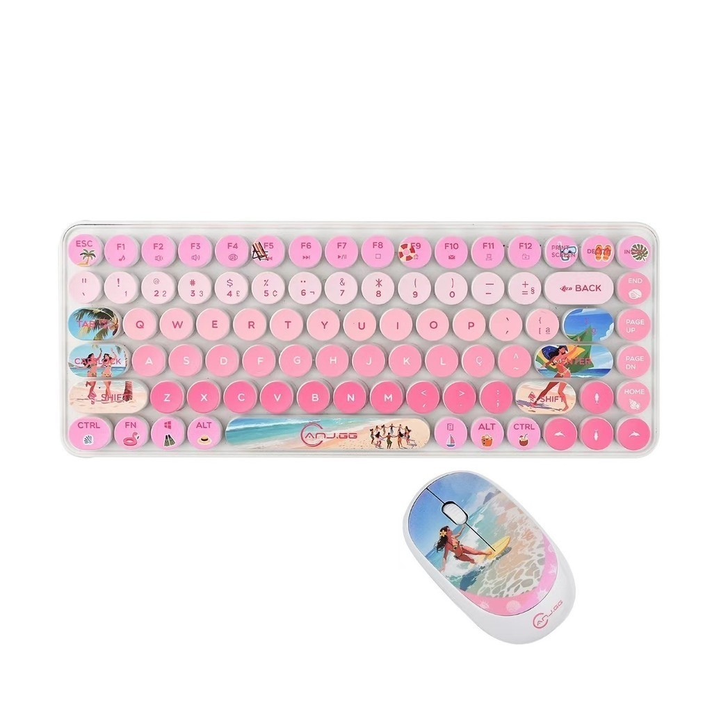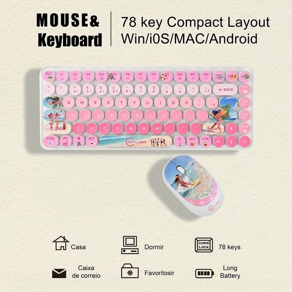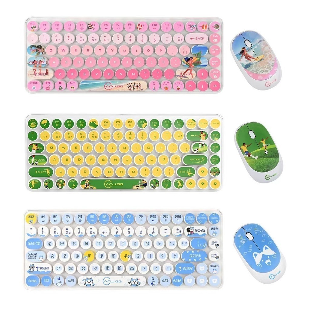 Conjunto Teclado e Mouse Sem Fio 2.4G – Design Colorido | Compatível com Windows, Mac, iOS e Android marisa