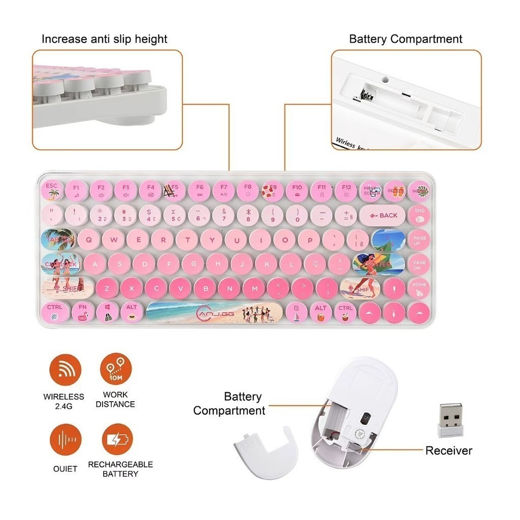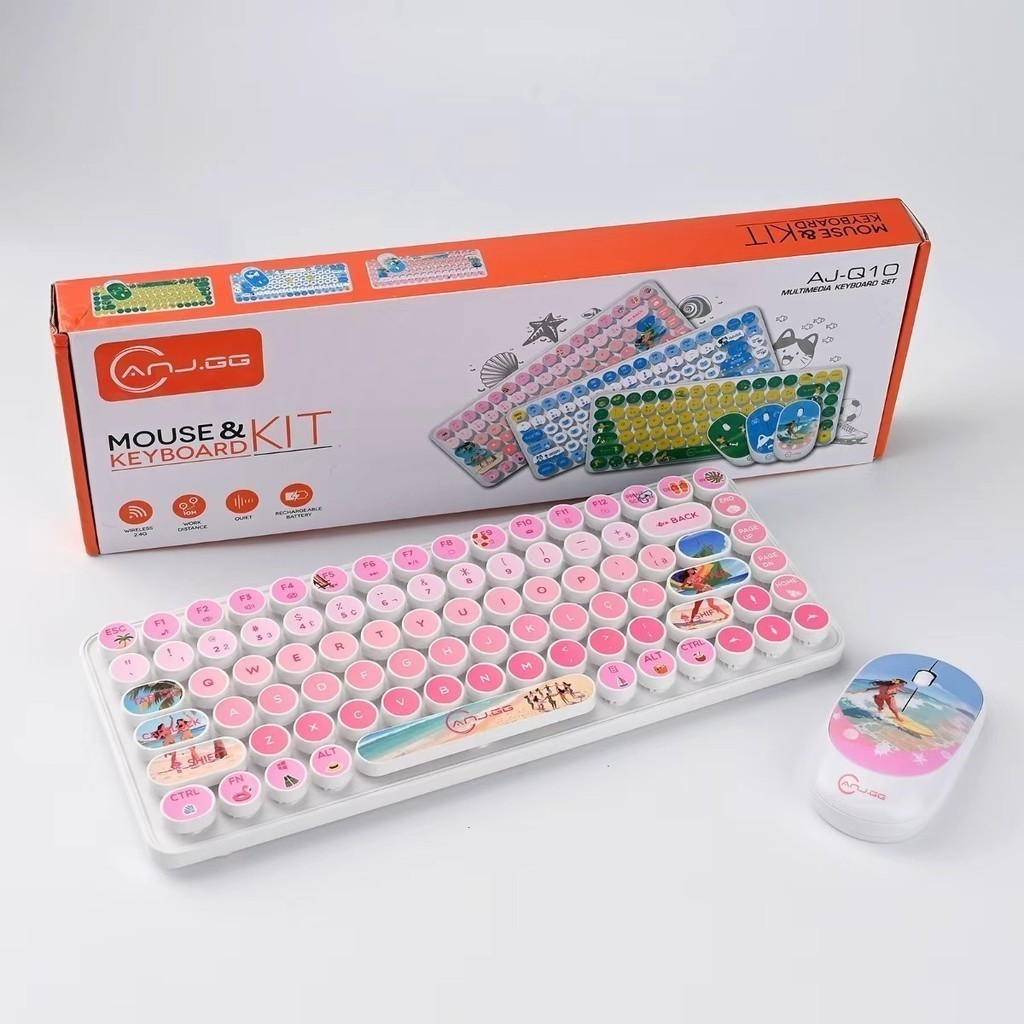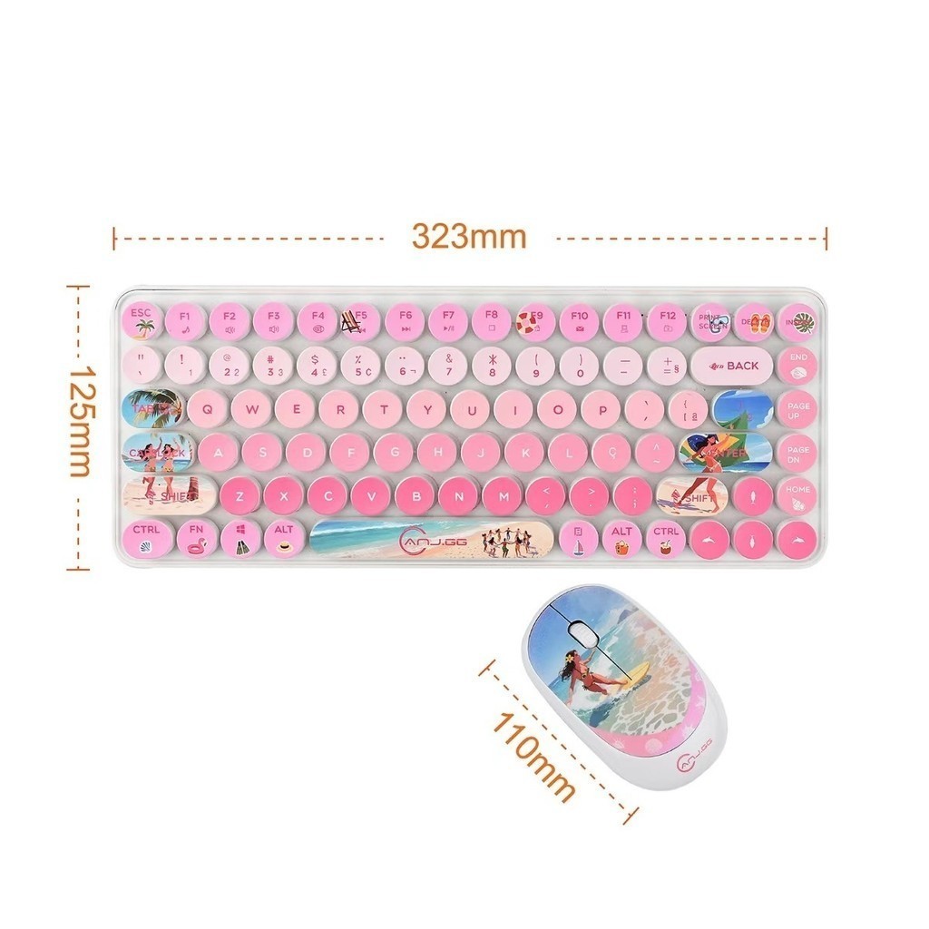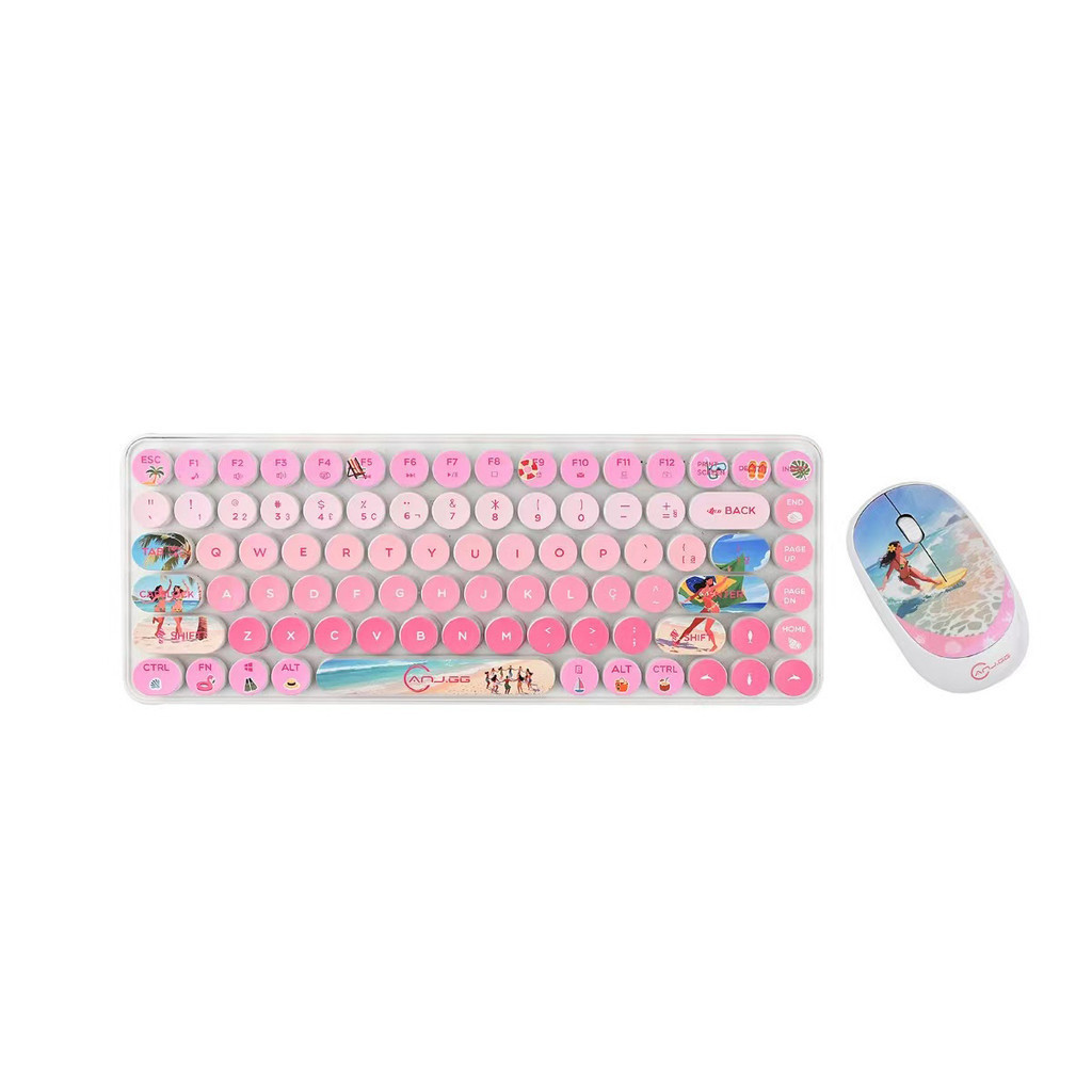 Conjunto Teclado e Mouse Sem Fio 2.4G – Design Colorido | Compatível com Windows, Mac, iOS e Android marisa