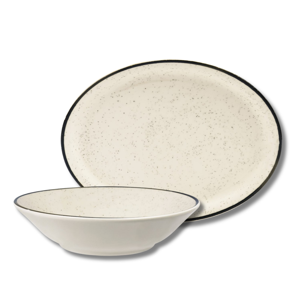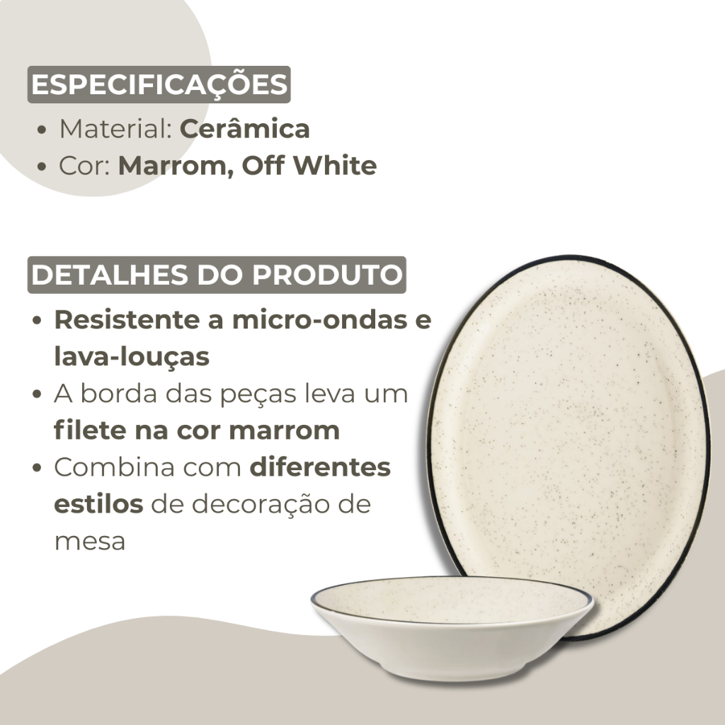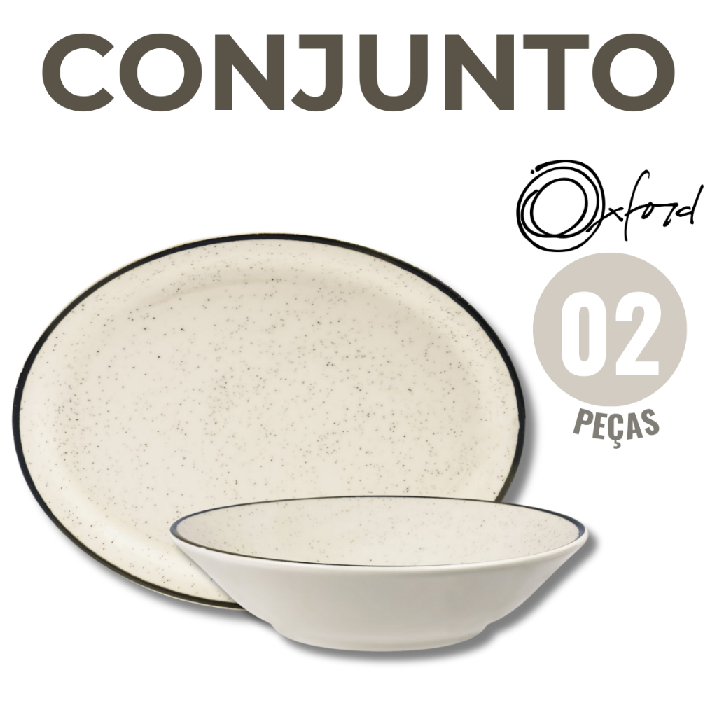 Conjunto Travessa Saladeira Baixelas Para Servir Brisa Areia Oxford Porcelanas