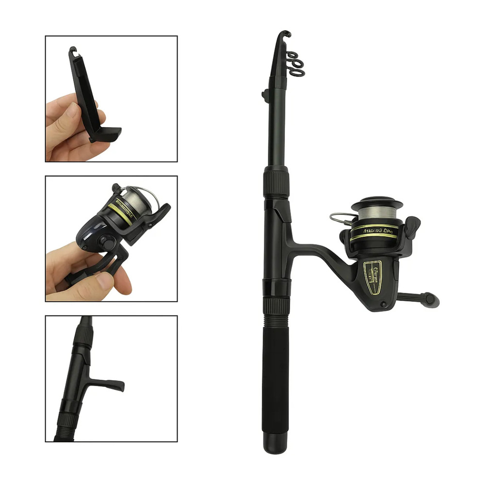 Conjunto Vara de Pesca Fibra de Vidro 1,6 m com Molinete Montado + Anzóis e Boia | Kit Completo