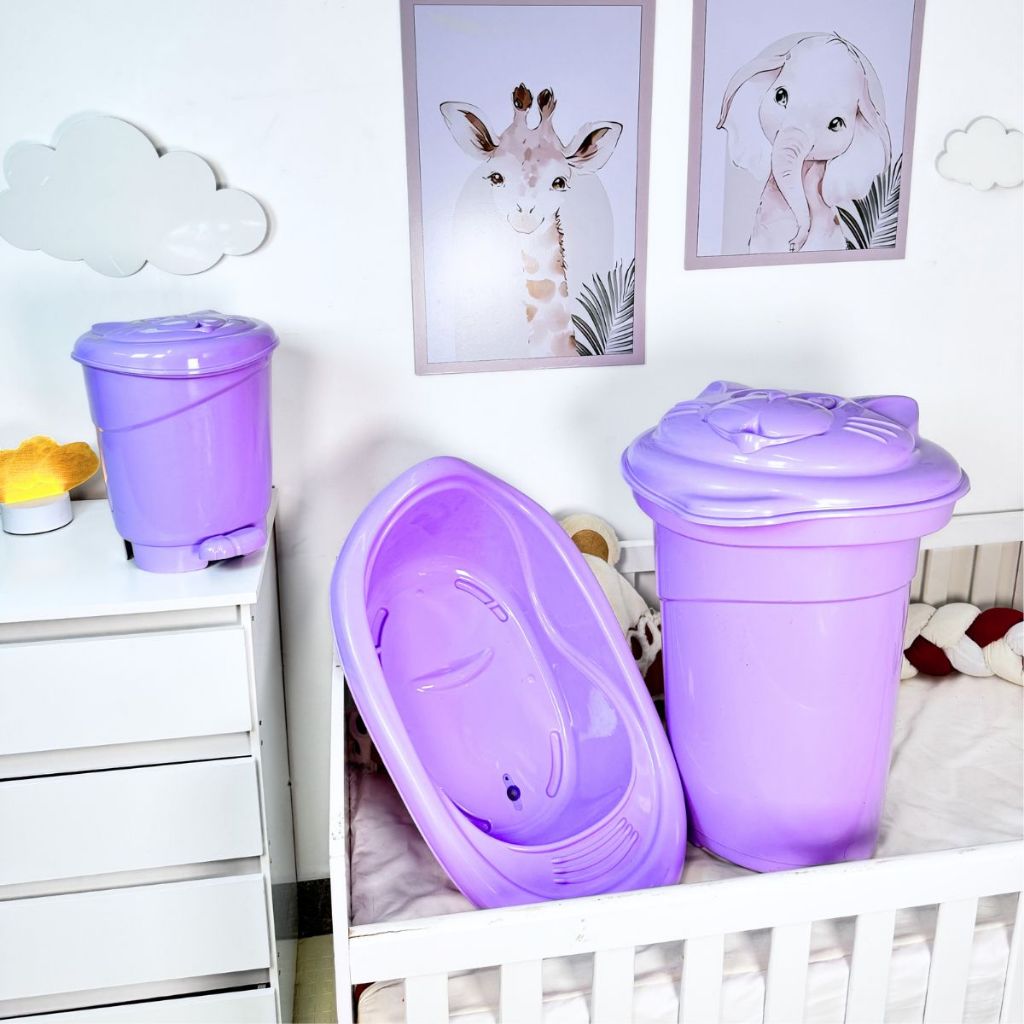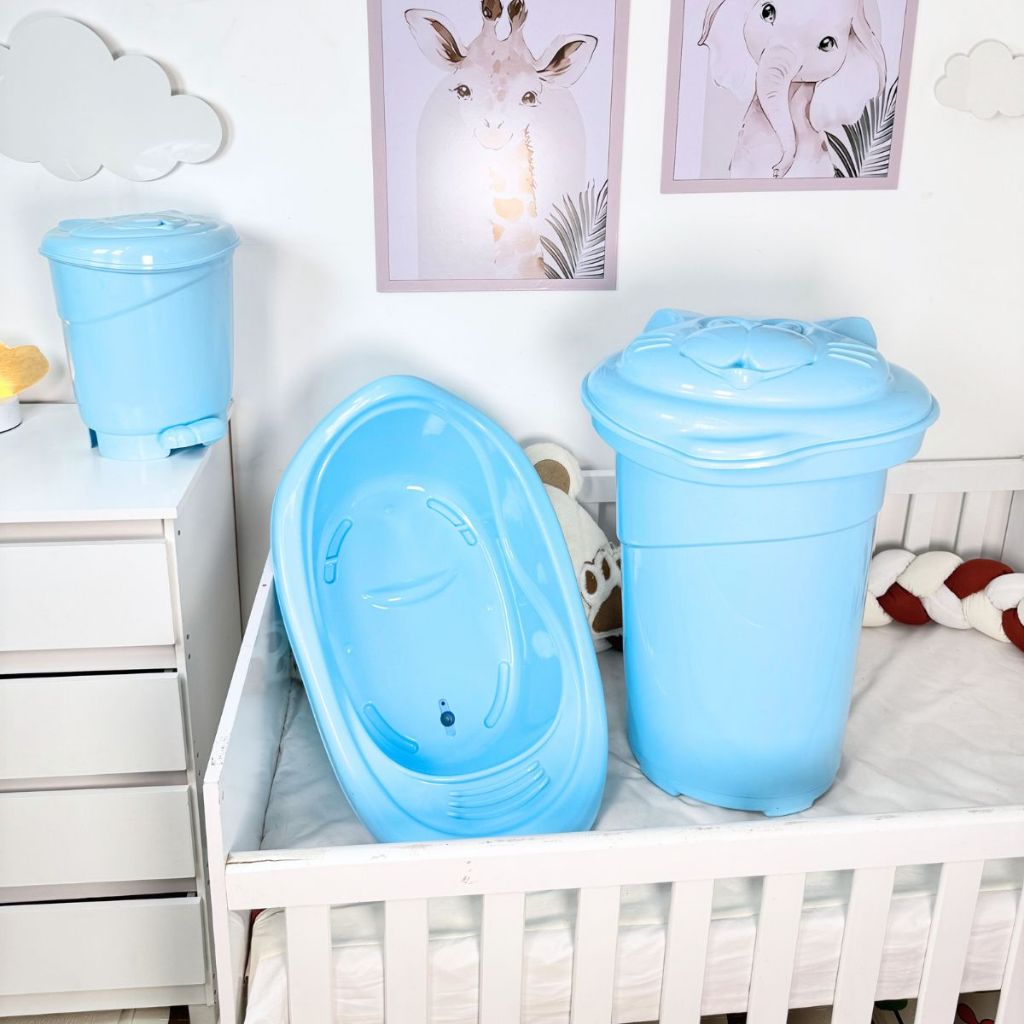 Conjunto banheiro do bebê- Cesto 36l lixeira 8l e banheira 22l