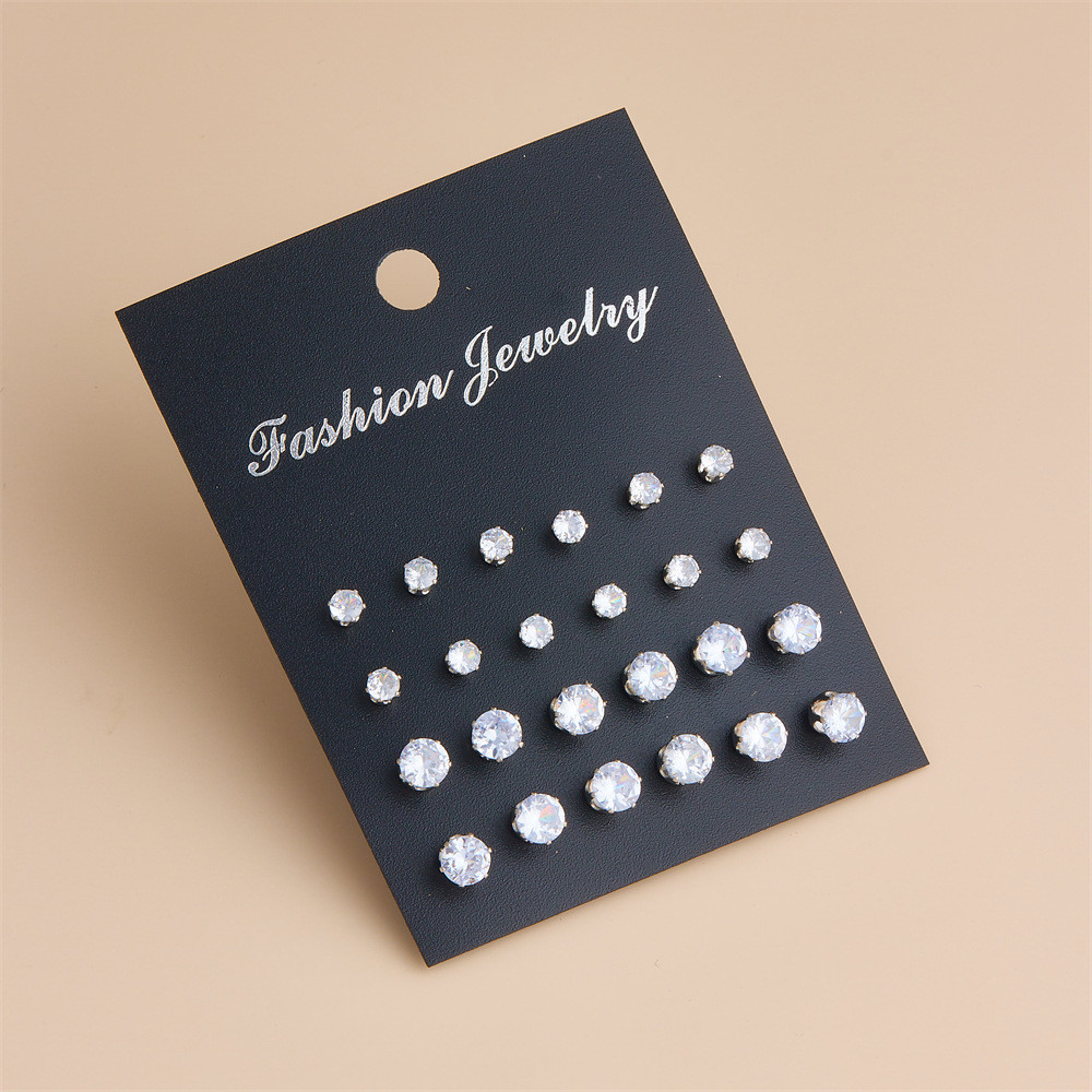 Conjunto de 12 Pares de Brincos de Cristal de Zircônia Delicados - Acessórios de Moda Elegantes para Mulheres