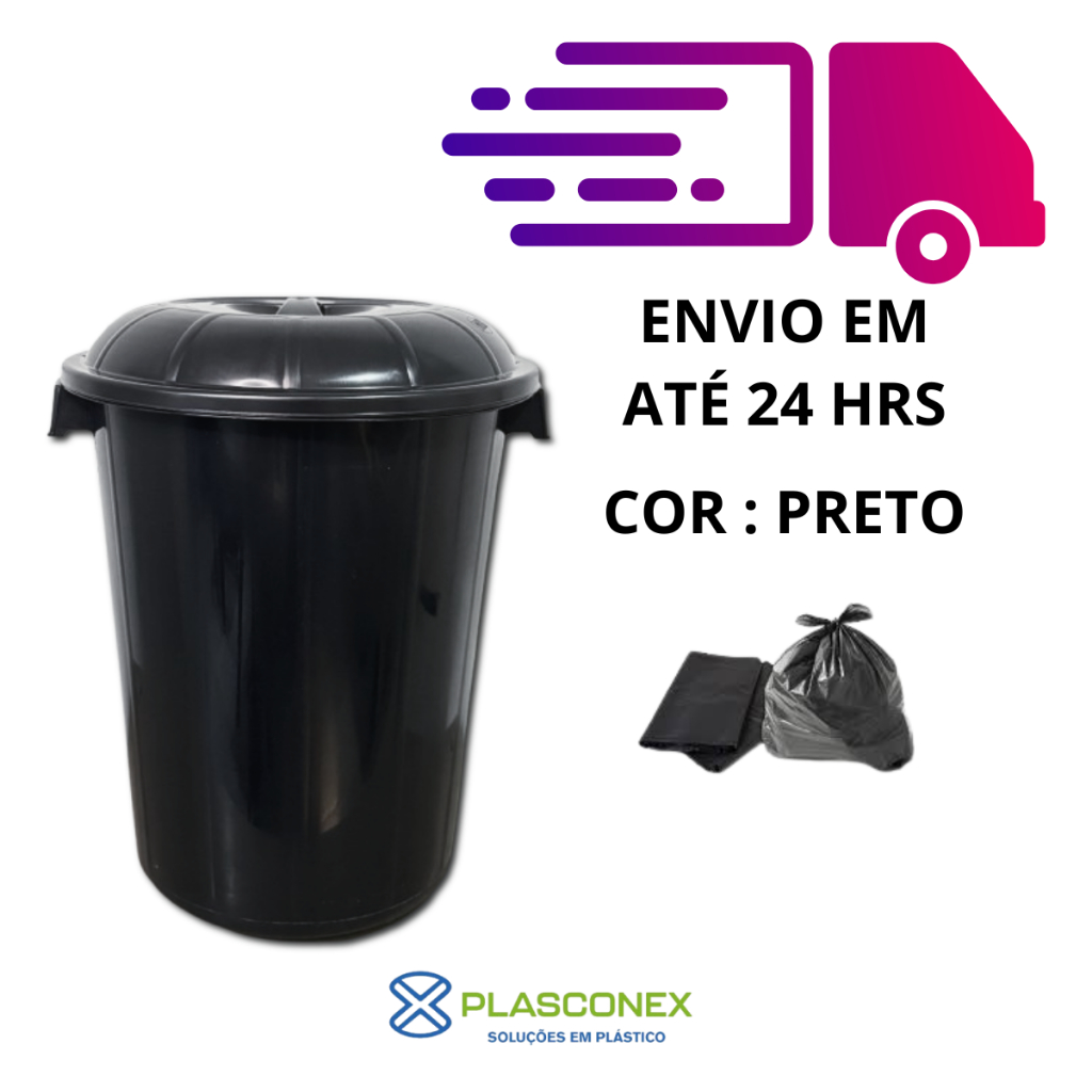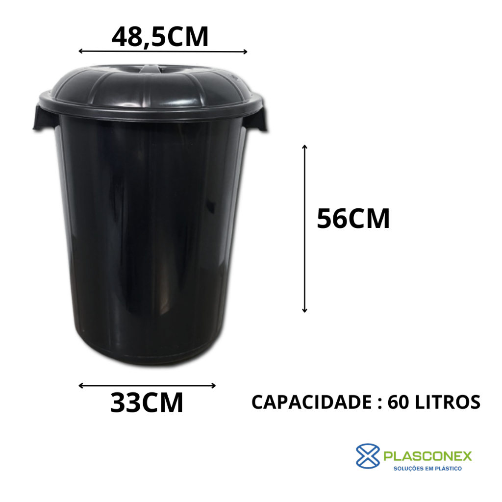 Conjunto de 3 Lixeiras com Tampa: 100 litros, 60 litros e 28 litros, Resistente p/ cozinha - Plasconex