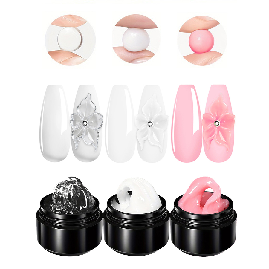 Conjunto de 4 peças 10 ml de gel sólido antiderrapante com caneta de ponta dupla, kit 3D para unhas em relevo e