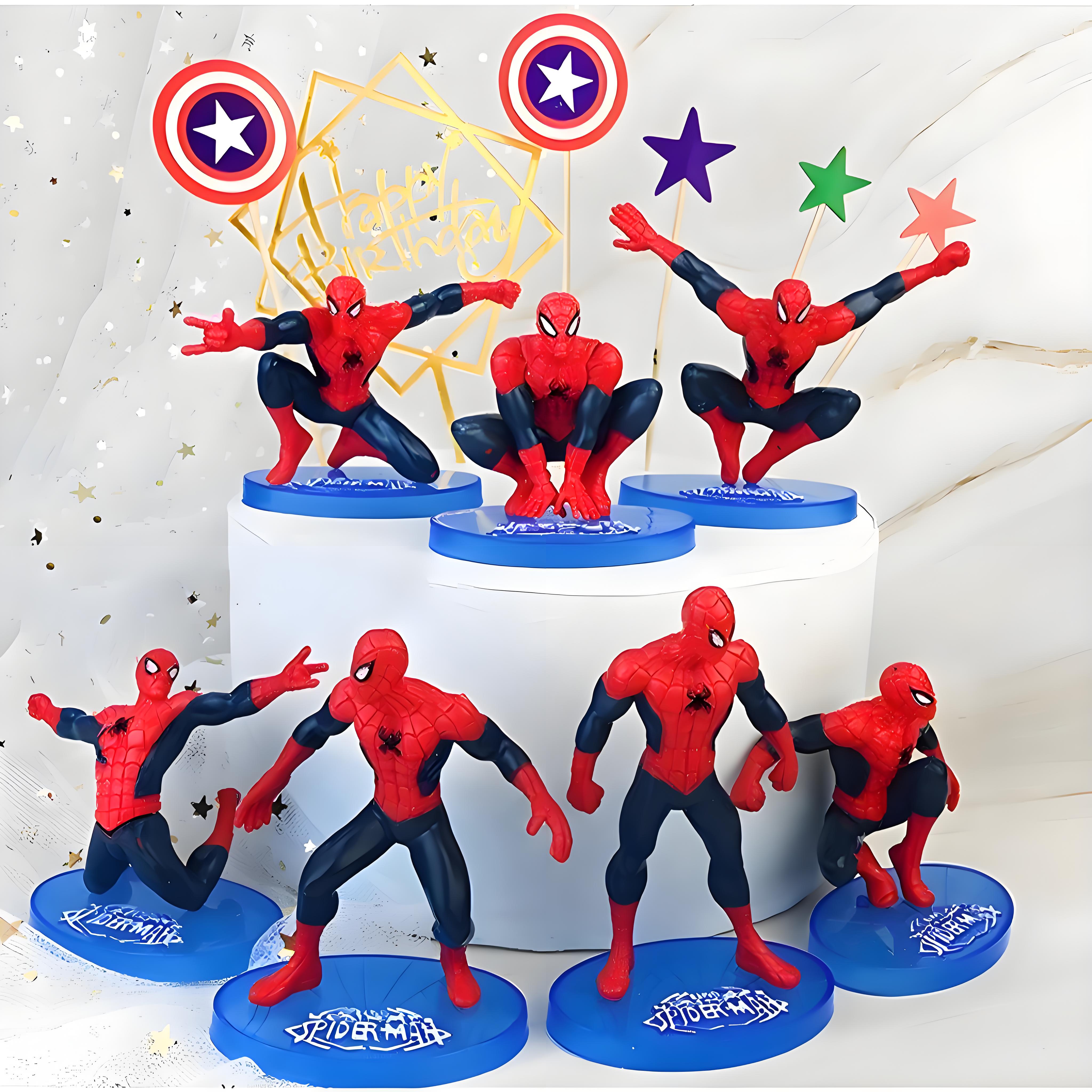 Conjunto de 7 Bonecos do Homem-Aranha Vingador para Decoração de Bolo de Aniversário o Ano Todo