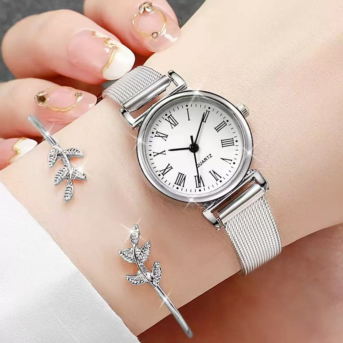 Conjunto de Acessórios Femininos Relógio Redondo Requintado e Elegante Retro